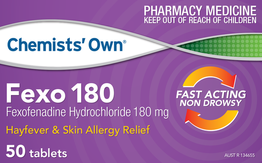 Chemists Own Fexo 180mg for hayfever & skin allergy relief. Provides rapid 24 hour relief from...