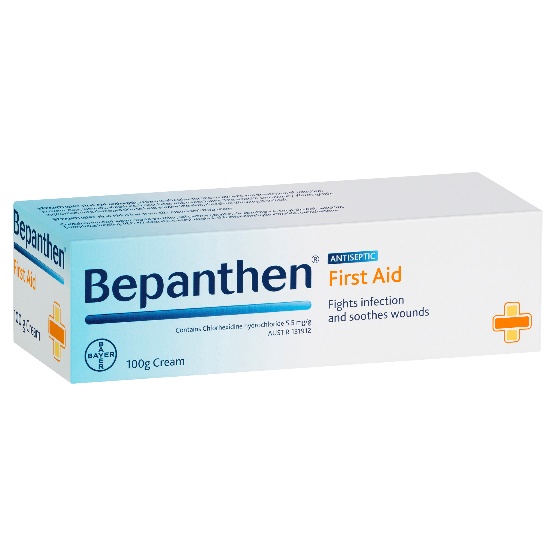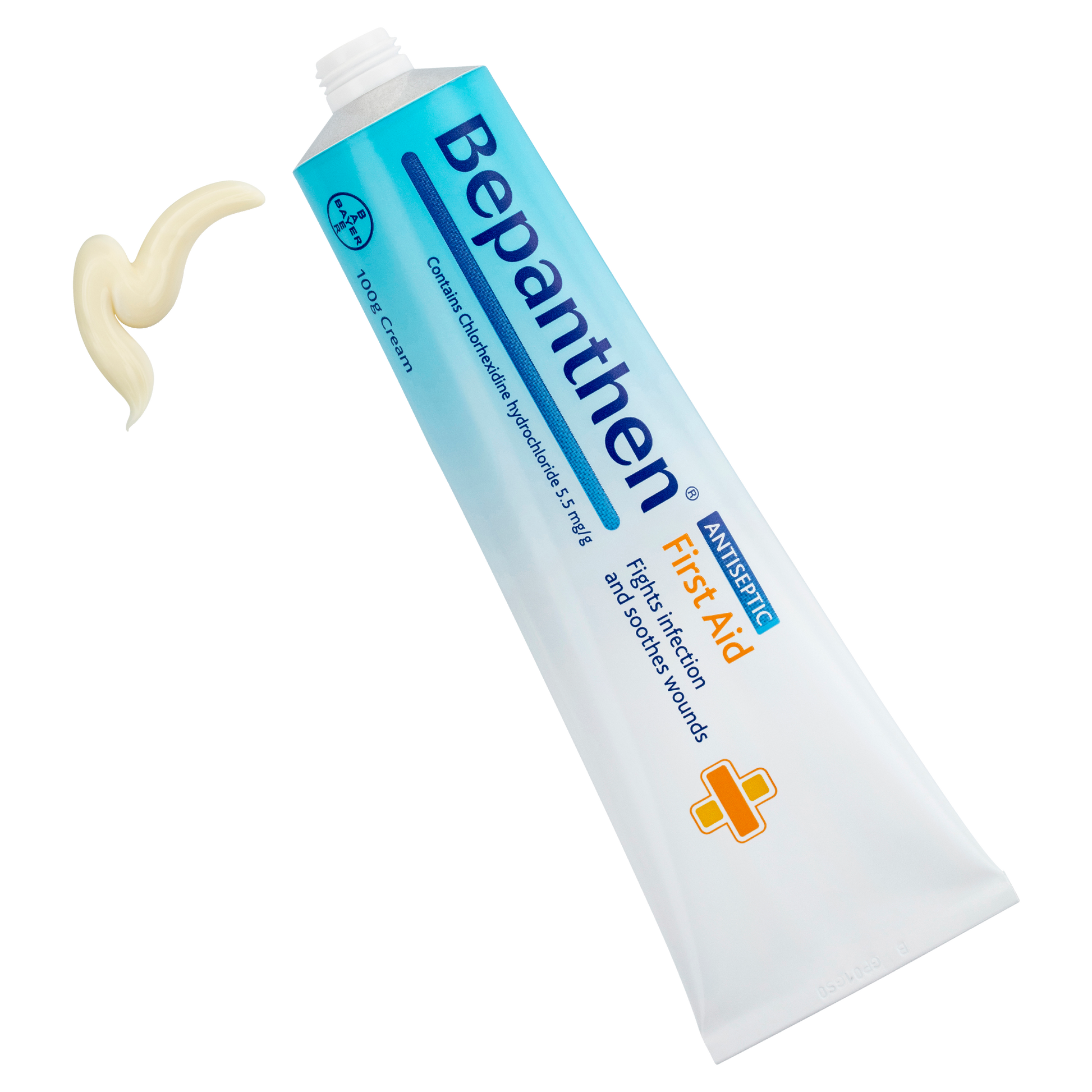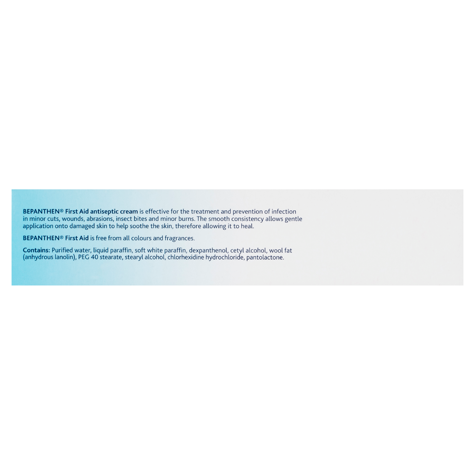 Bepanthen First Aid antiseptic cream is effective for the treatment and prevention of infection in minor cuts, wounds, abrasions, insect bites and minor burns. The smooth consistency allows gentle application onto damaged skin to help soothe the skin, therefore allowing it to heal. Bepanthen First Aid is free from all colours and fragrances.