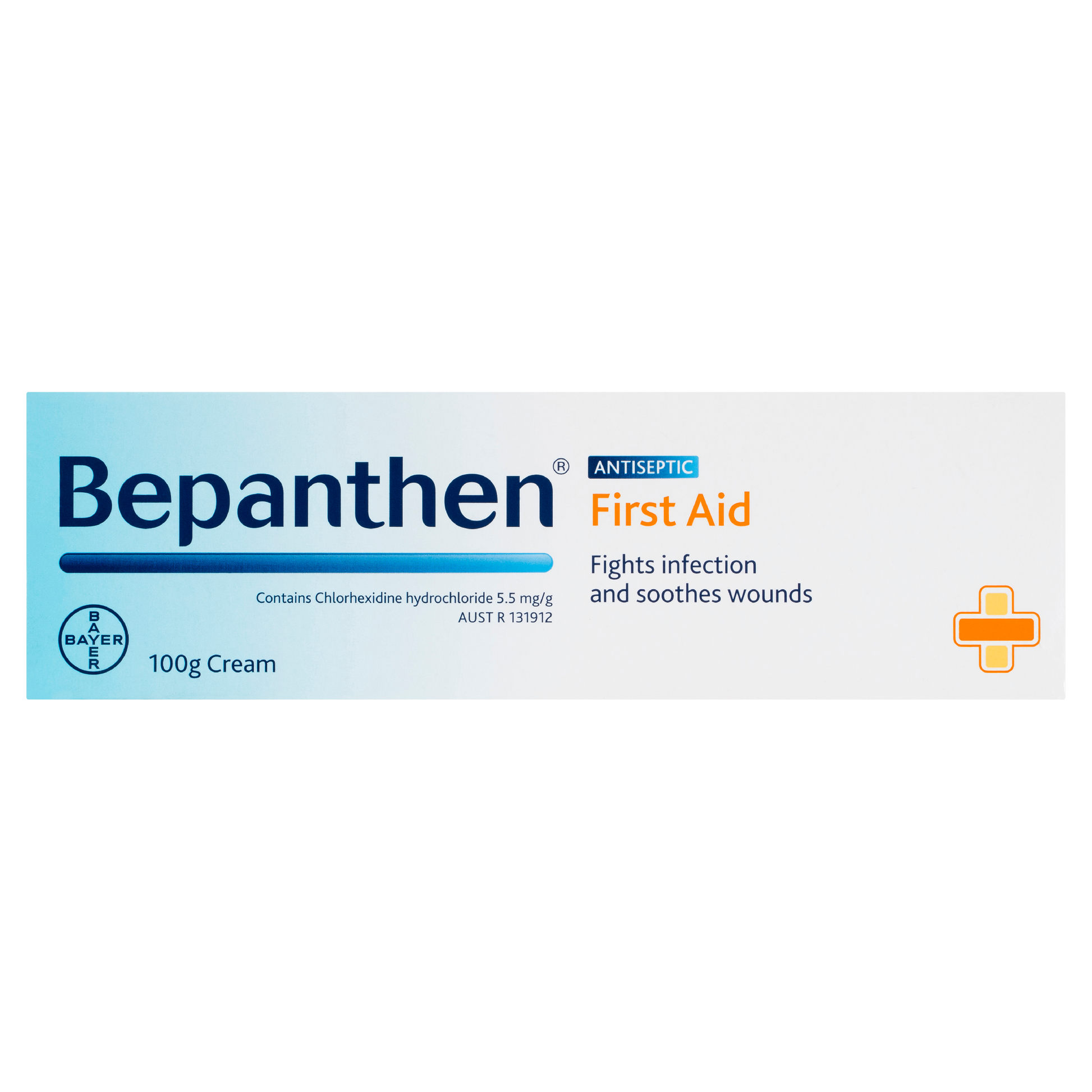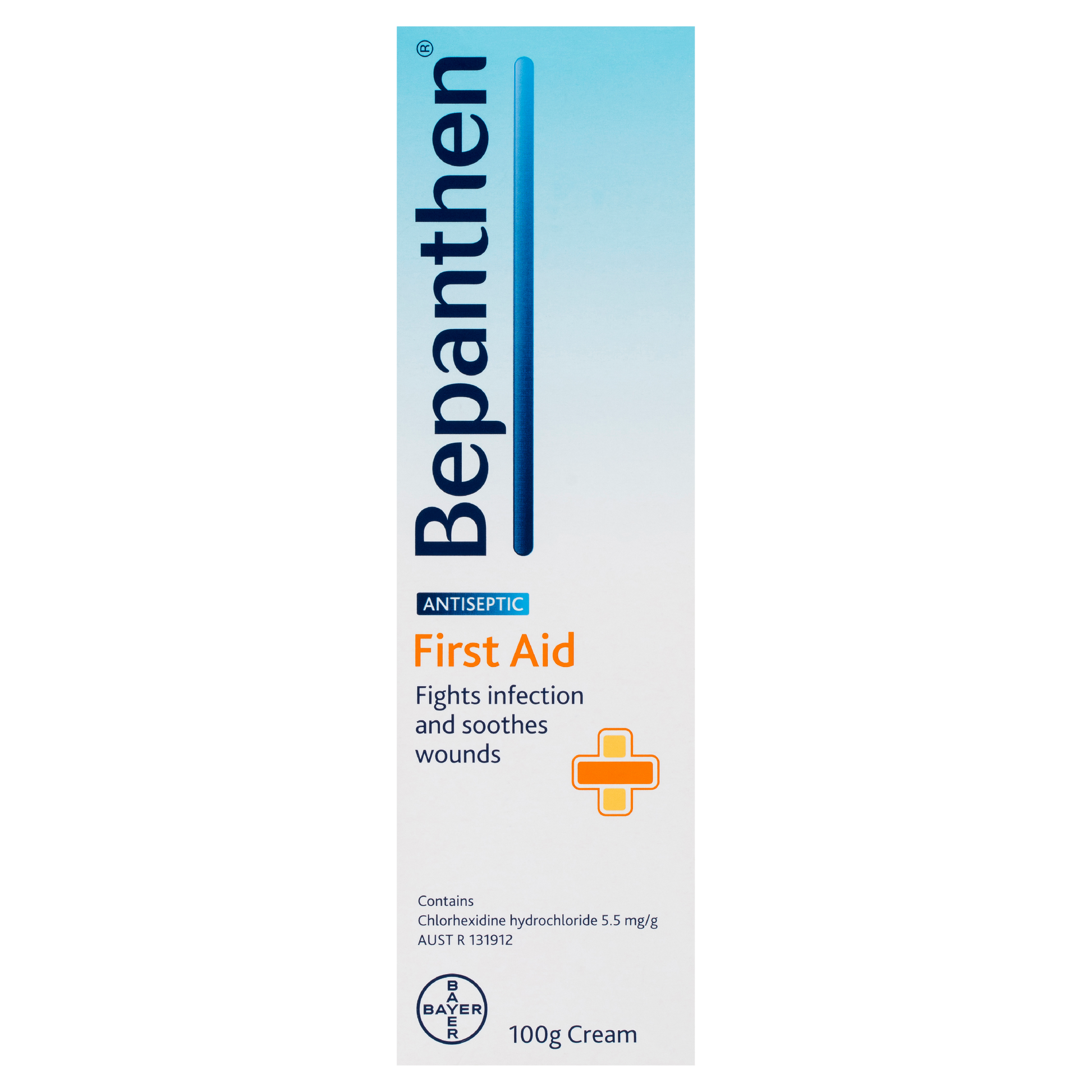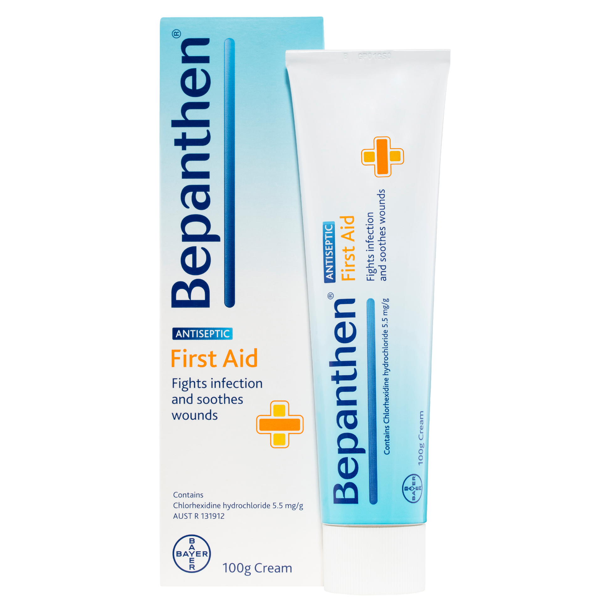 Bepanthen First Aid antiseptic cream is effective for the treatment and prevention of infection in minor cuts, wounds, abrasions, insect bites and minor burns. The smooth consistency allows gentle application onto damaged skin to help soothe the skin, therefore allowing it to heal. Bepanthen First Aid is free from all colours and fragrances.