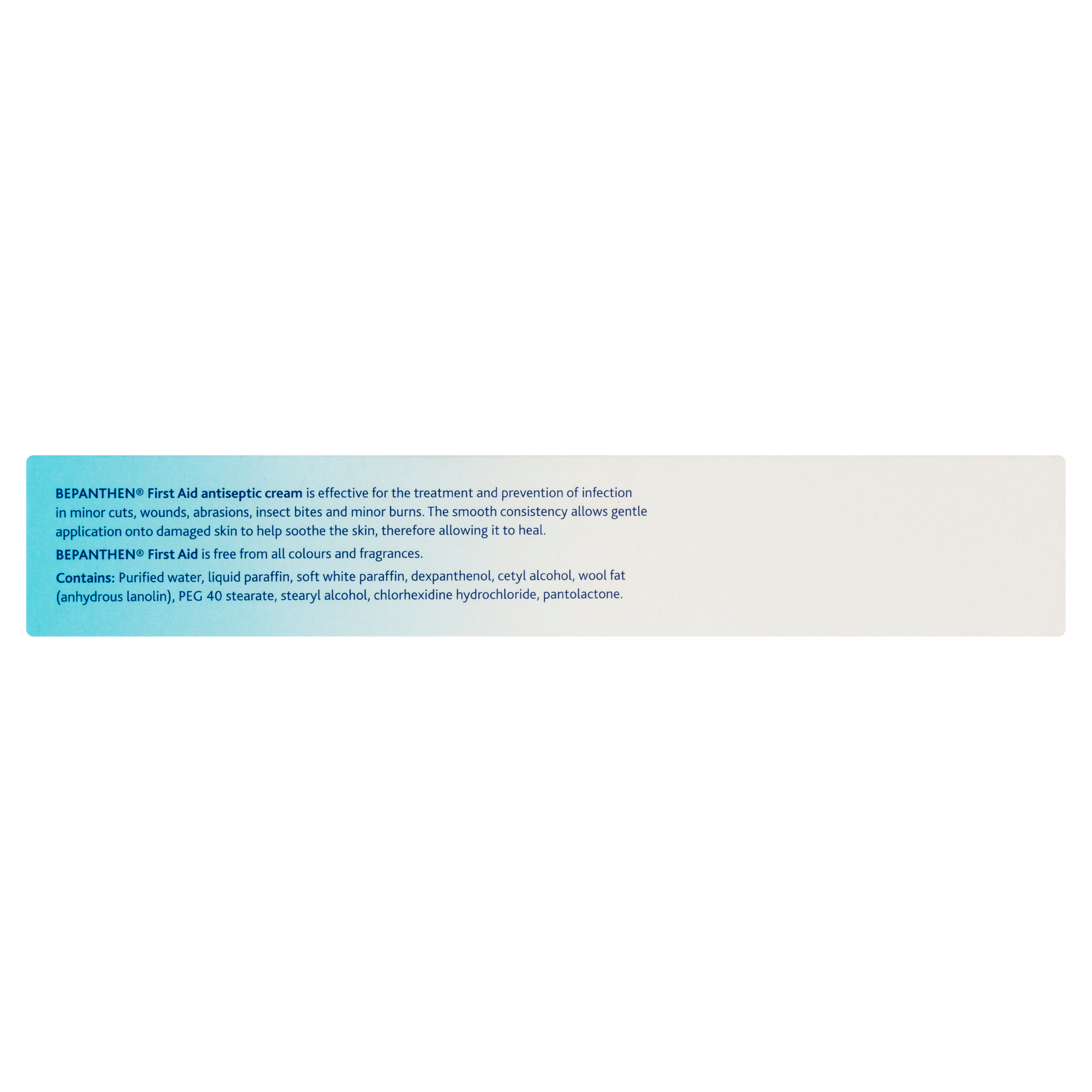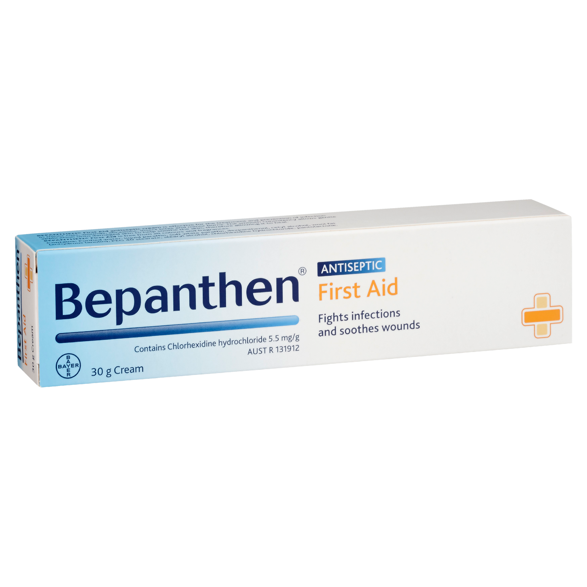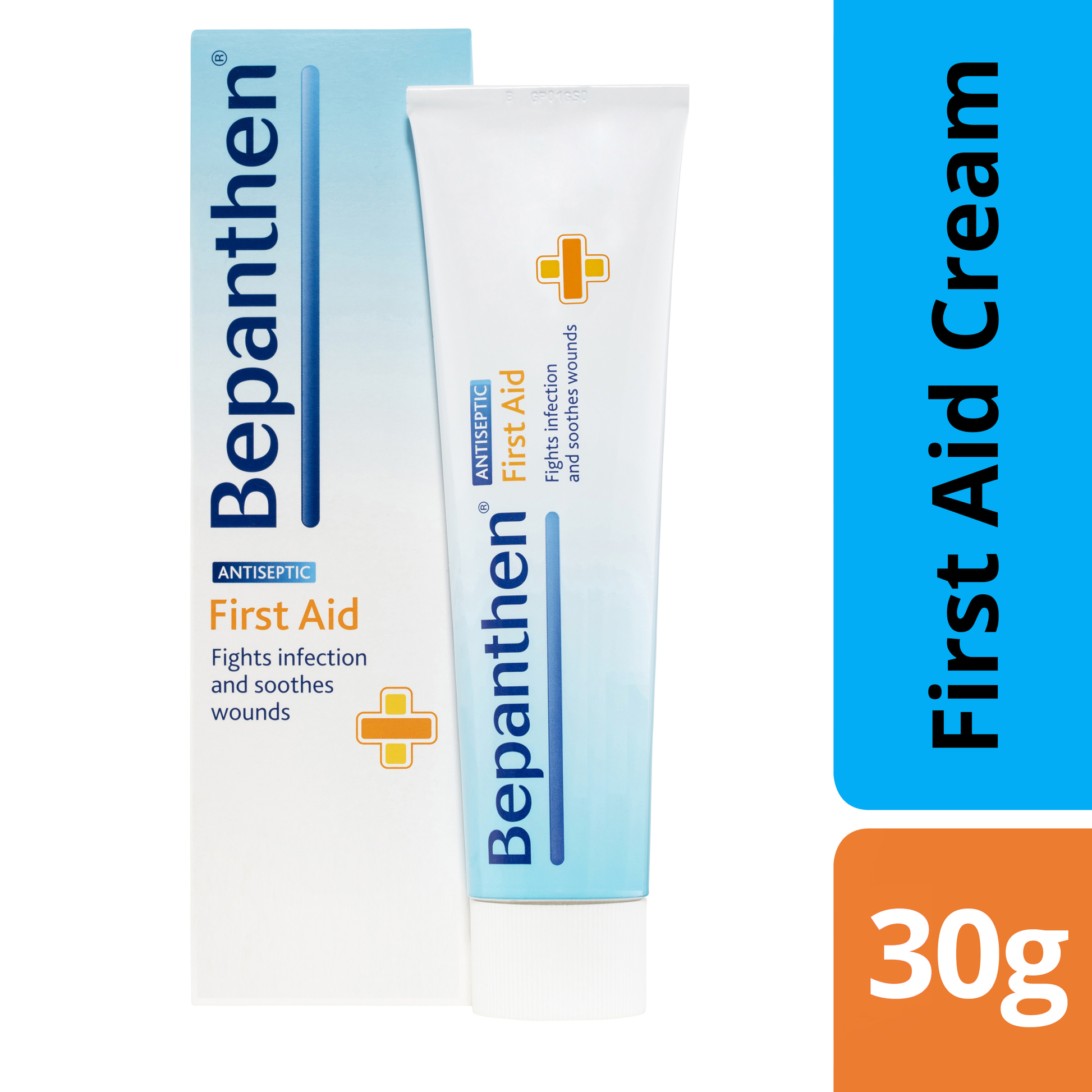 Bepanthen First Aid antiseptic cream is effective for the treatment and prevention of infection in minor cuts, wounds, abrasions, insect bites and minor burns. The smooth consistency allows gentle application onto damaged skin to help soothe the skin, therefore allowing it to heal. Bepanthen First Aid is free from all colours and fragrances.