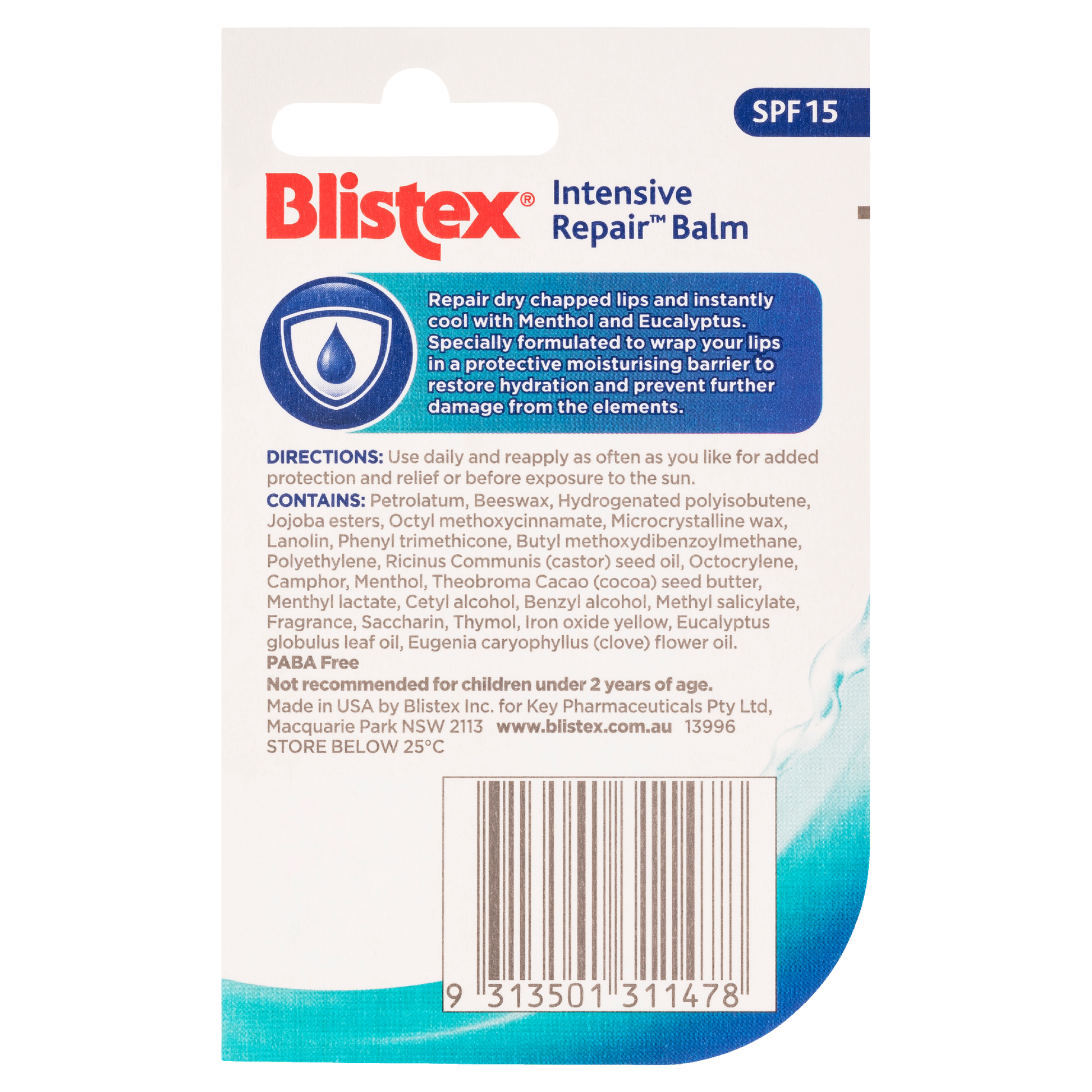 Bilstex intensive repair lip balm, has SPF 15. It helps repair & relieve dry, chapped lips with visible results in 24 hours. It helps prevent damage from the elements.