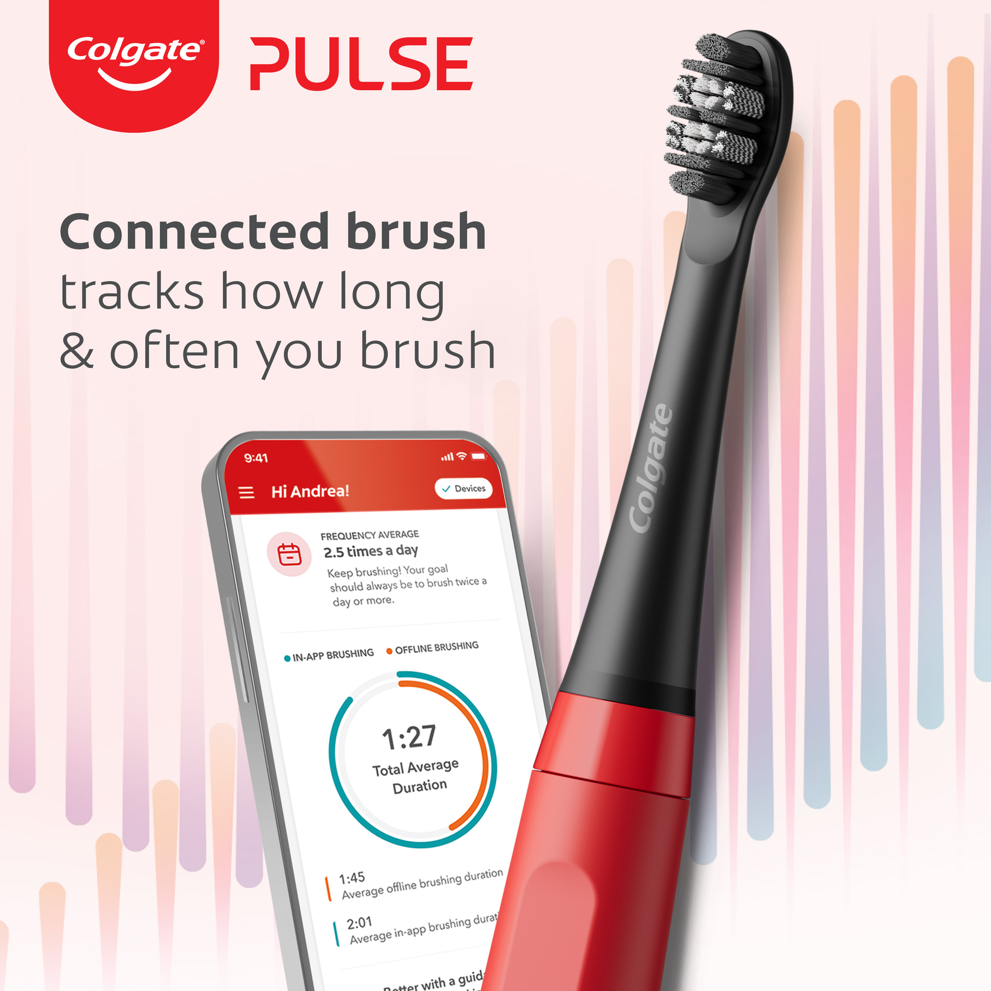 Track how long and often you brush to improve your brushing routine with Colgate Pulse Series 1 Whitening Electric Toothbrush. Whiter teeth in 1 week^.