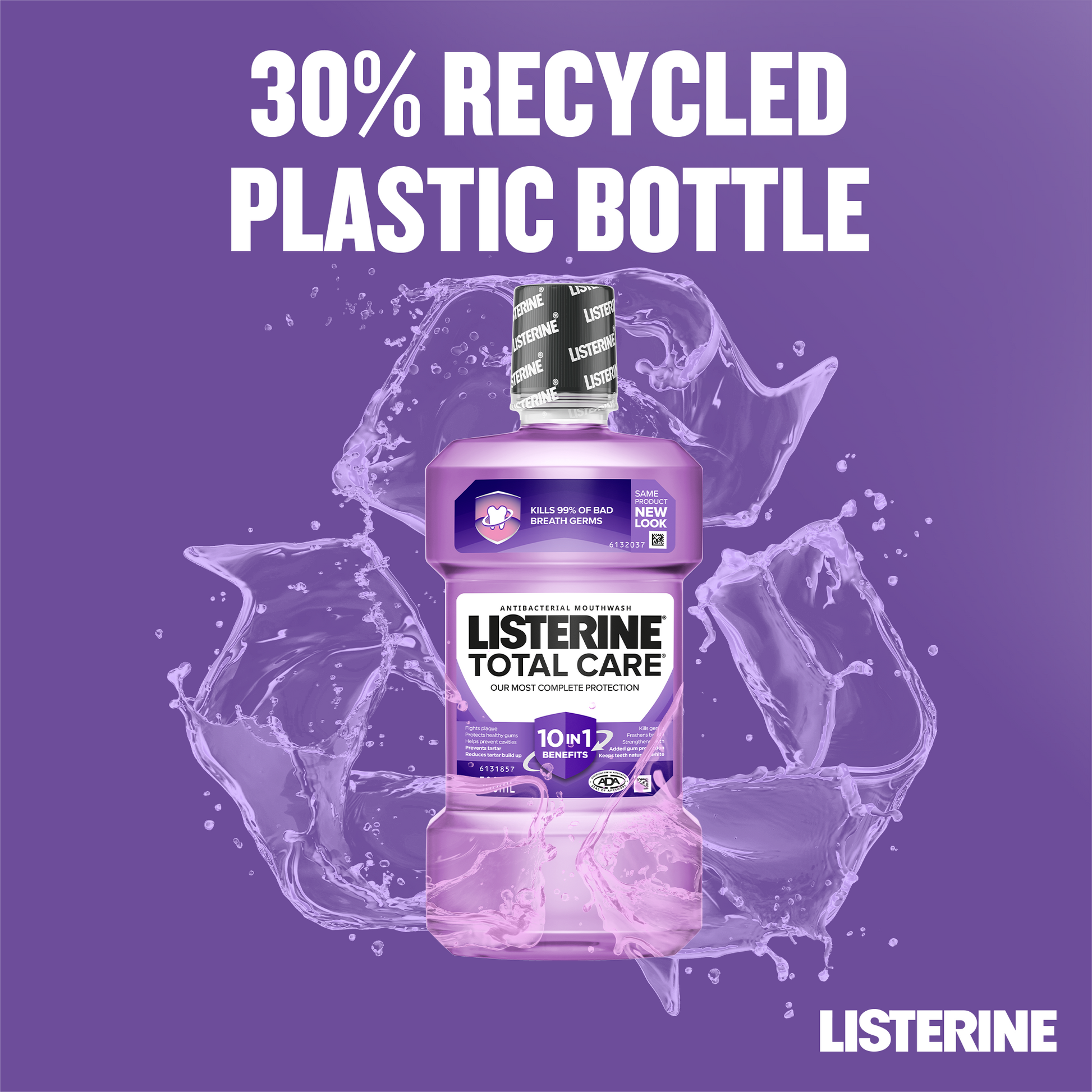 LISTERINE TOTAL CARE ® is our most complete protection, with a less intense taste, and has 10 in 1 benefits for a noticeably healthier mouth.