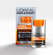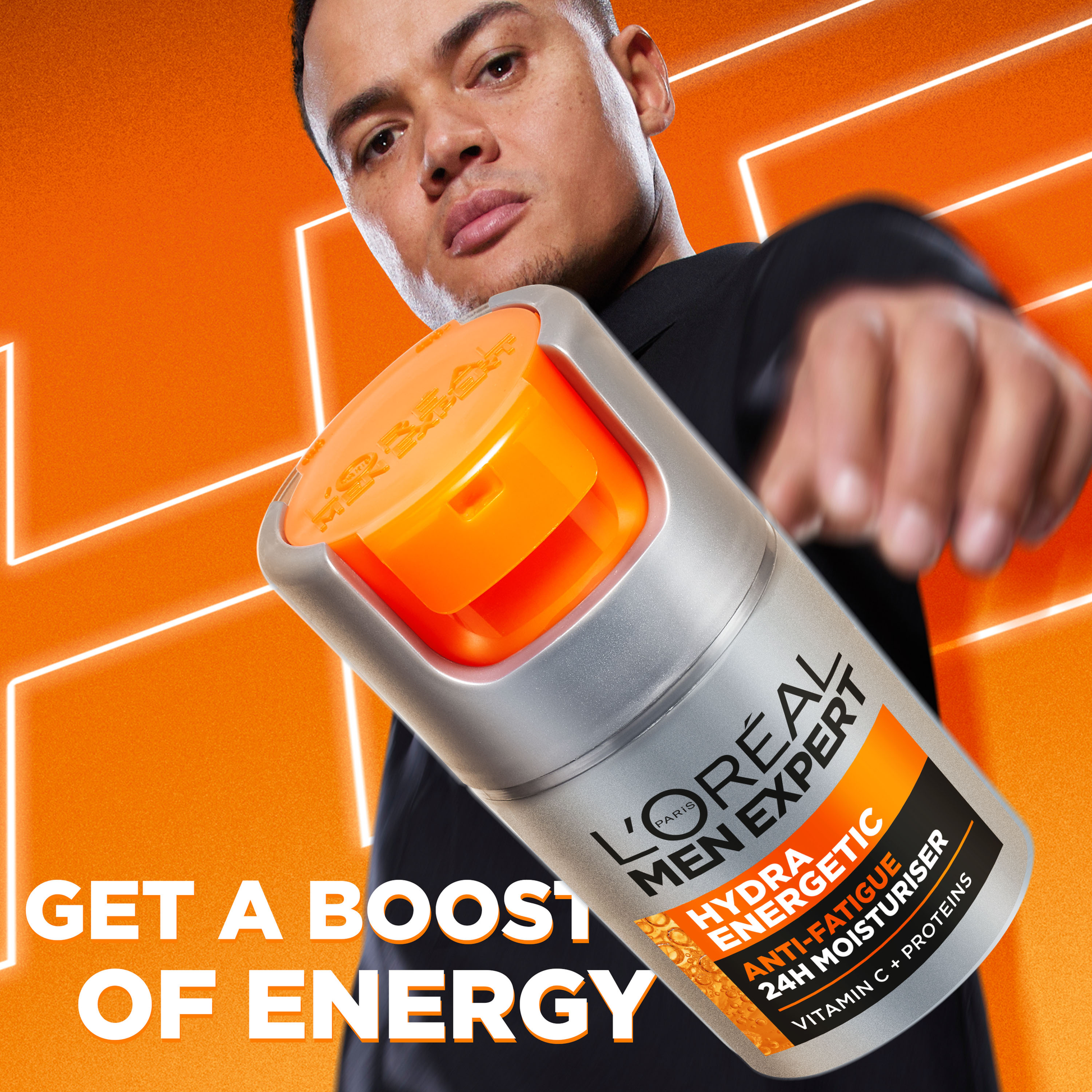 L'Oréal Men Expert Hydra Energetic Daily Moisturiser gives skin an instant energy boost and fights the 5 signs of fatigue: dark circles, tired features, loss of firmness, roughness and dullness.