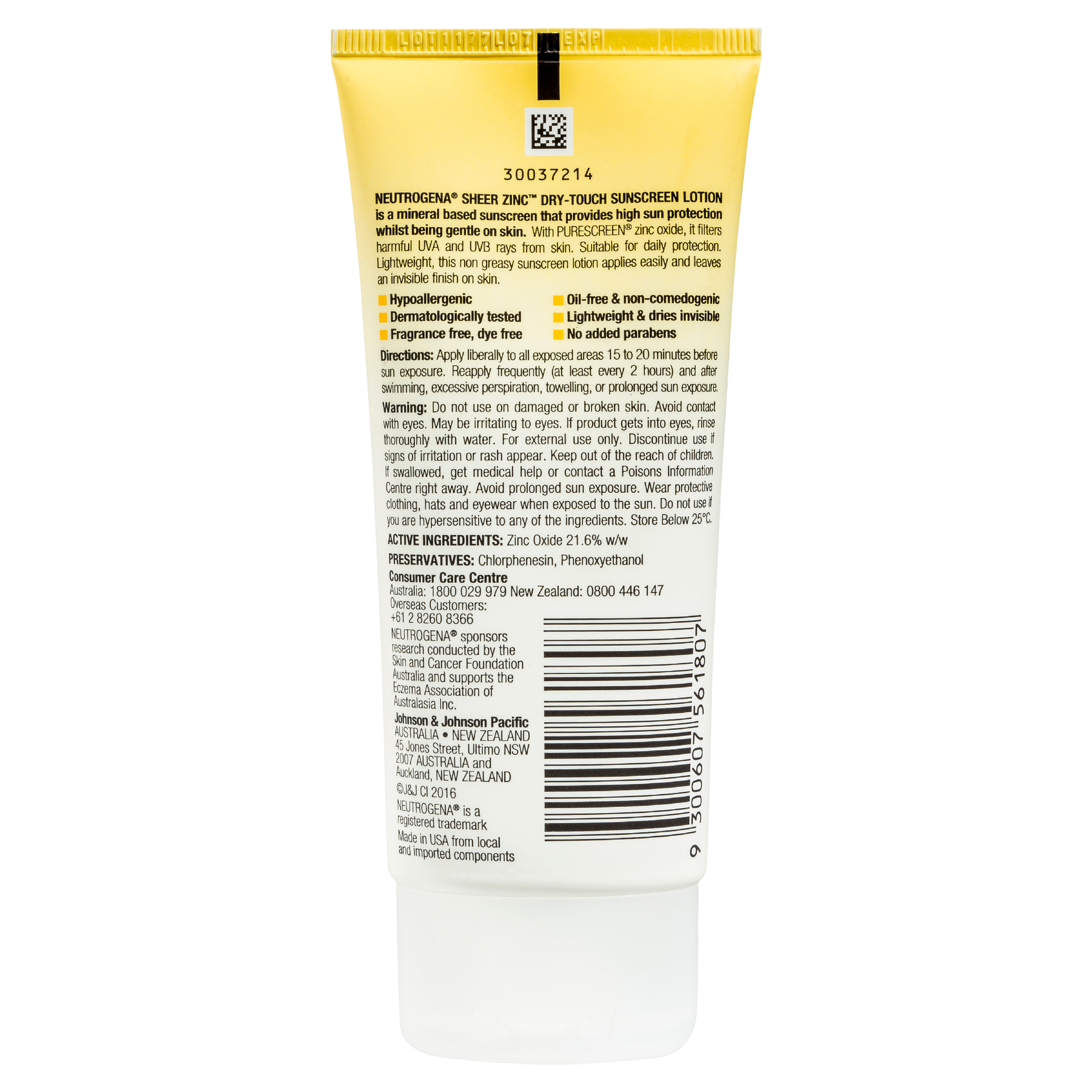 Neutrogena Sheer Zinc Dry-Touch Sunscreen Lotion SPF 50 for sensitive skin is hypoallergenic and up to 2 hours water resistant. The mineral based sunscreen contains zinc oxide for physical broad spectrum sun protection.