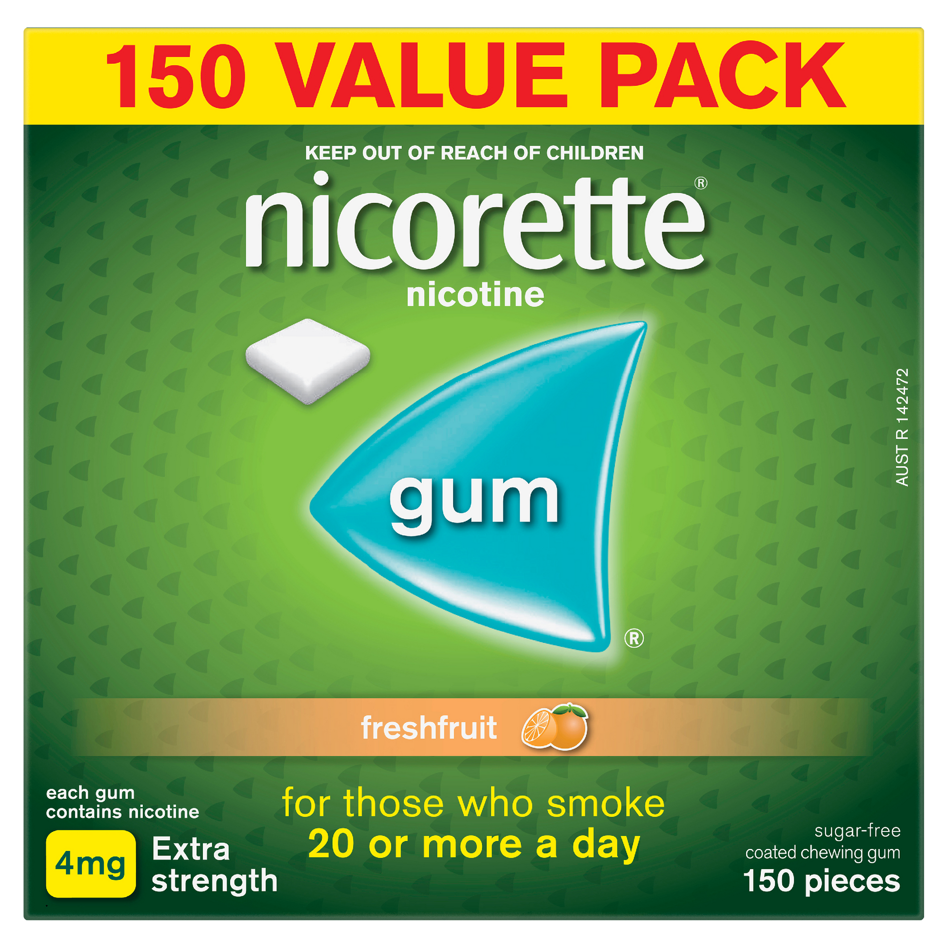 Nicorette Quit Smoking Extra Strength Nicotine Gum Freshfruit 150 Pack
