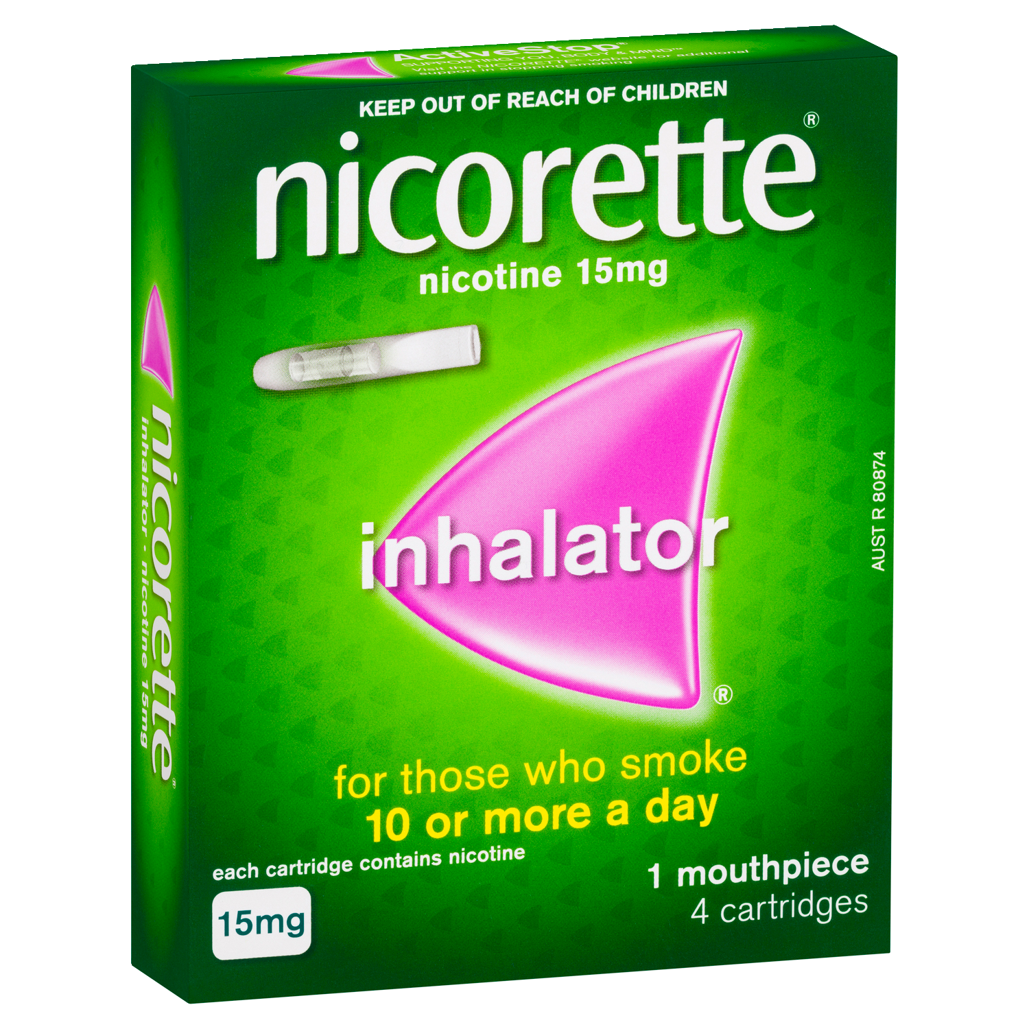 Use nicotine inhaler with ActiveStop supporting you, body & mind. Visit the Nicorette website for additional support in stopping smoking and information on other quit smoking products. This quit smoking inhaler can also be used in conjunction with other Nicotine Replacement Therapy (NRT) products for better craving relief.
