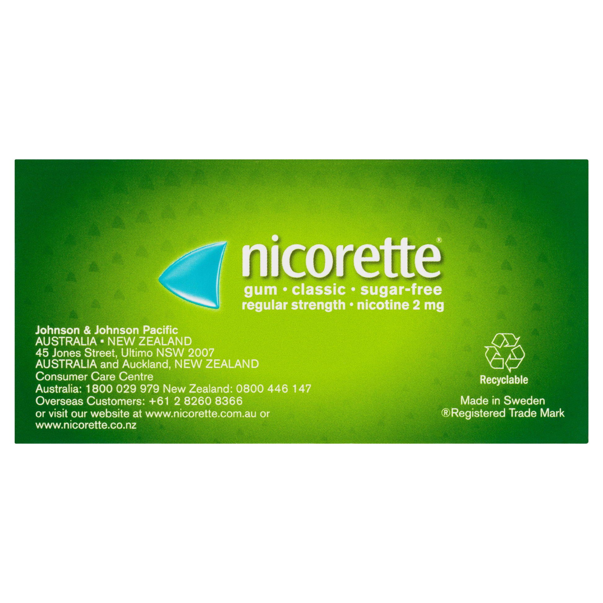 Nicorette Nicotine Gum Extra Strength Uncoated Regular Strength 2mg is a quit-smoking aid.