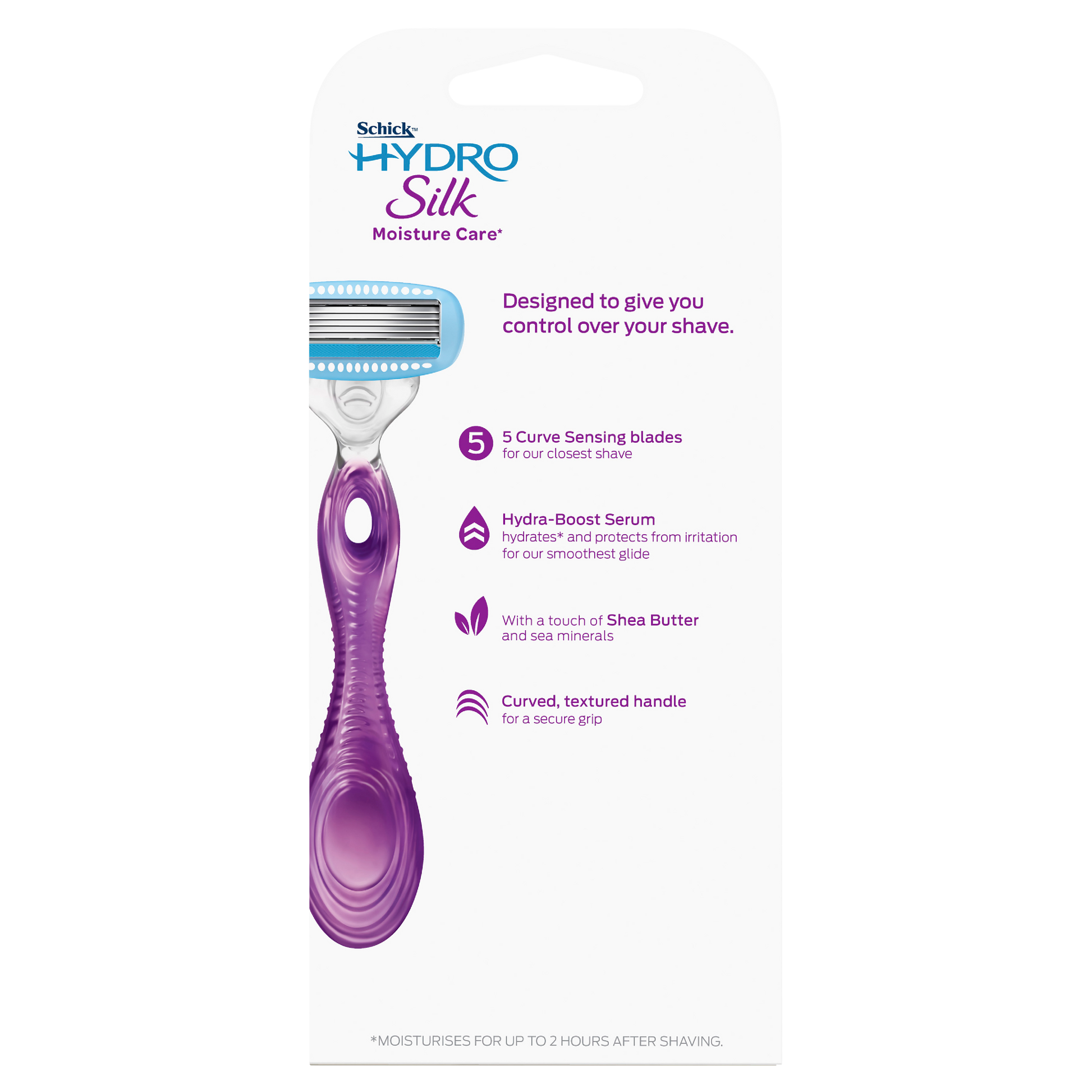 The Schick® Hydro Silk® Razor features a Hydra-Boost serum formulated with shea butter and sea minerals to hydrate* while you shave.