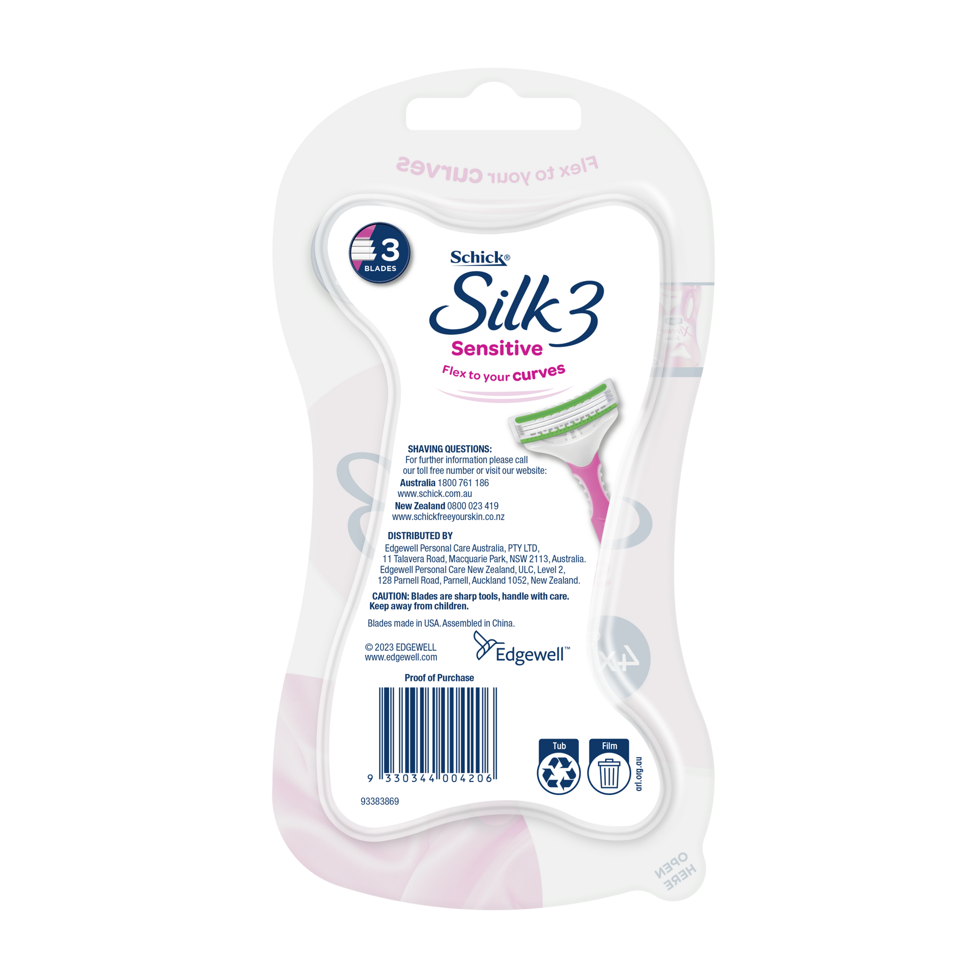 Schick Silk 3 Sensitive Disposable Razors have 3 blades that flex & pivot to adapt to the curves of your body – thanks to an ergonomic handle with soft rubber grip for great control.