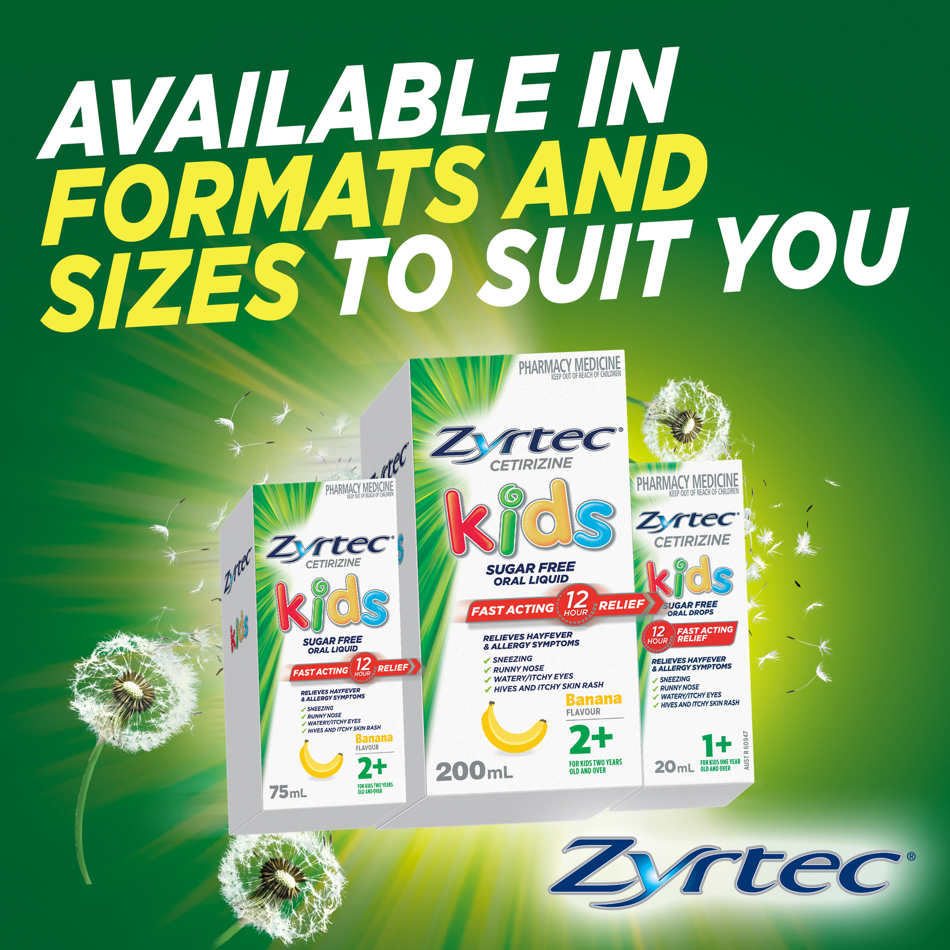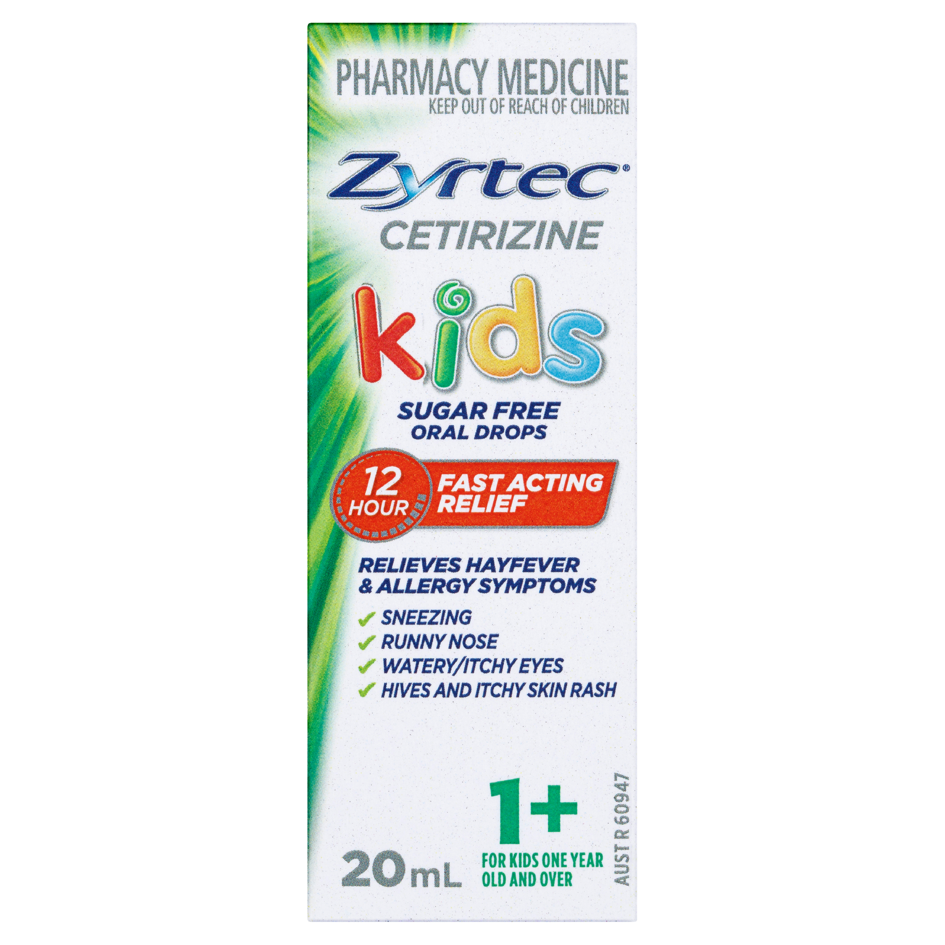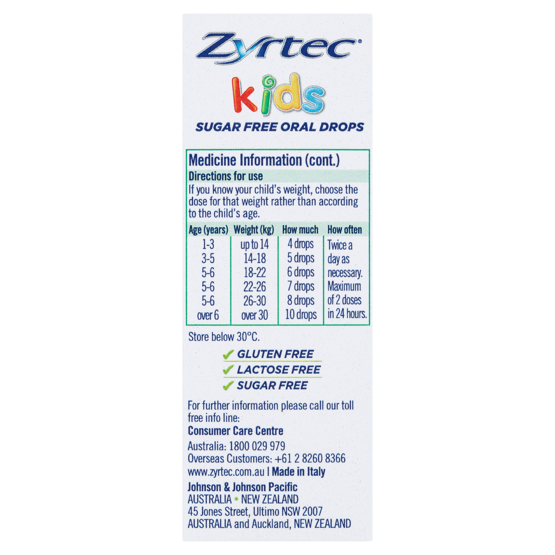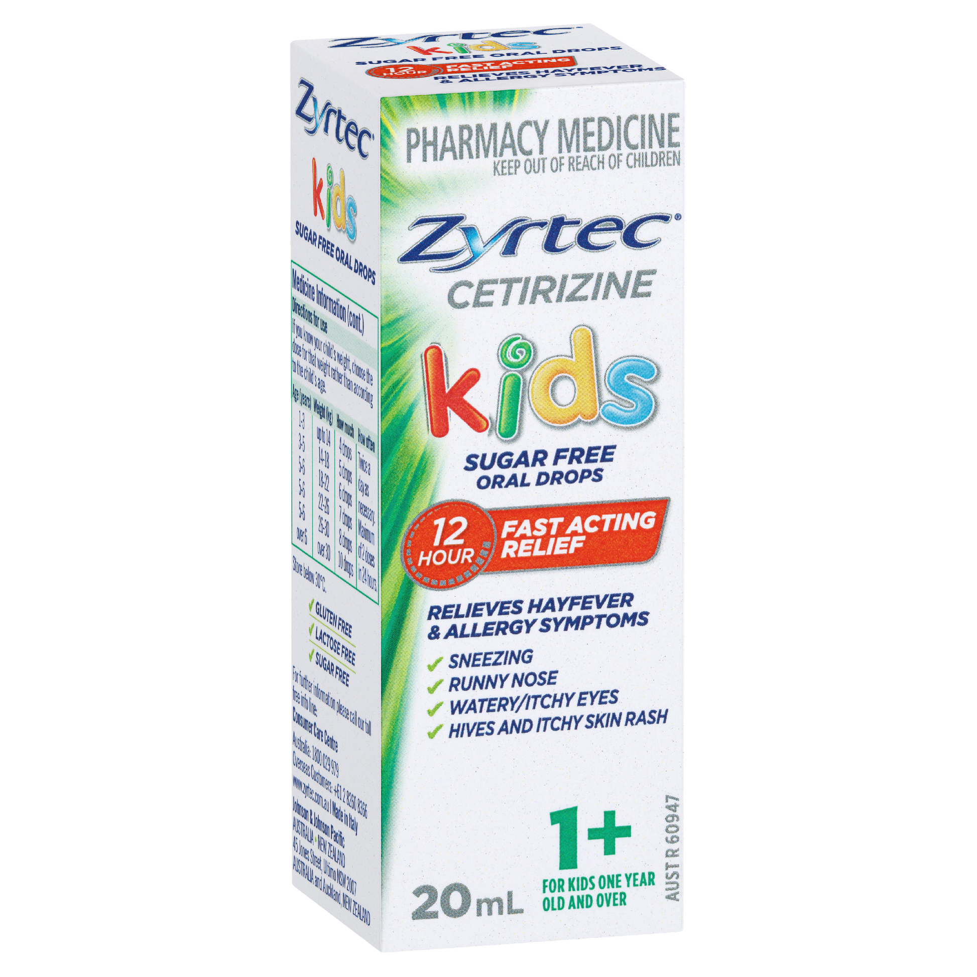 Zyrtec Kids Rapid Acting 12 hour Allergy & Hayfever Relief Antihistamine Oral Drops relieve hayfever & year around allergy symptoms, and are sugar, lactose and gluten free. Zyrtec Kids Oral Drops are suitable for children 1+.