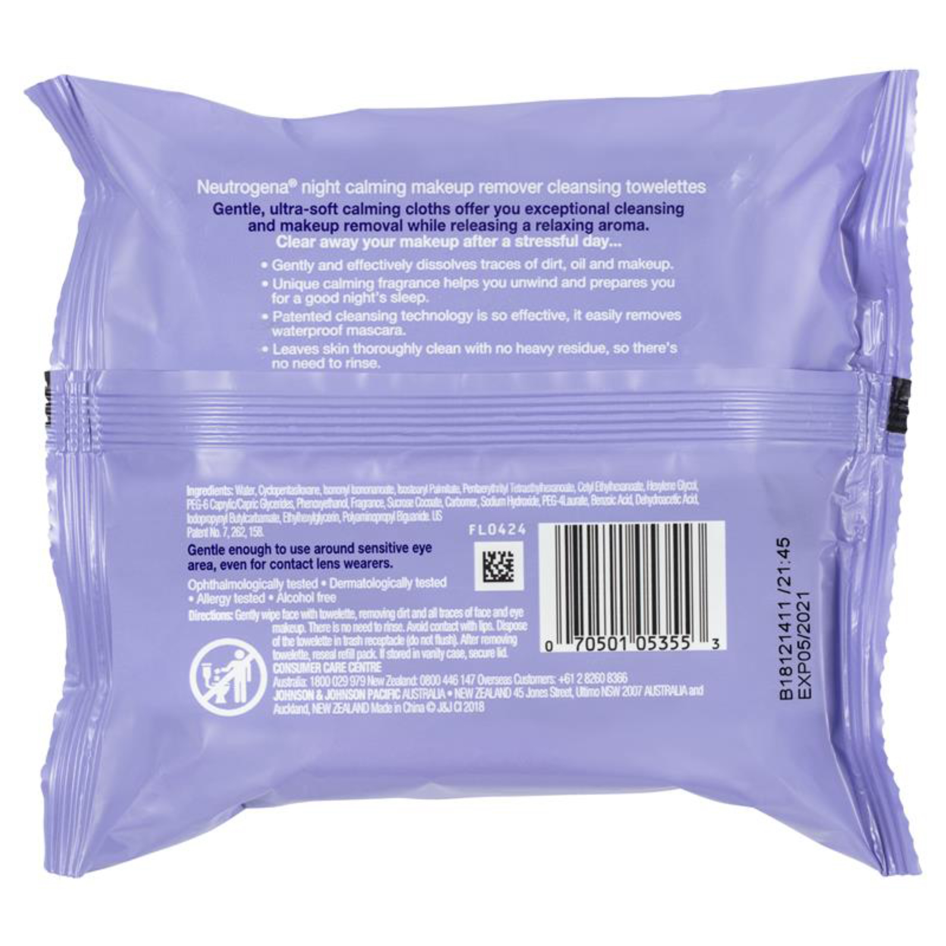 Neutrogena Night Calm Makeup Remover Cleansing Towelettes are alcohol free, gentle, ultra-soft cloths which offer superior cleansing and makeup removal. Clinically proven to remove 99.3% of your most stubborn makeup, including waterproof mascara, with just one wipe. And the patented formula is as gentle to the eyes as water. They gently and effectively dissolve all traces of dirt, oil, and makeup in seconds. Leaves skin thoroughly clean with no heavy residue, so there's no need to rinse. With a relaxing aroma.