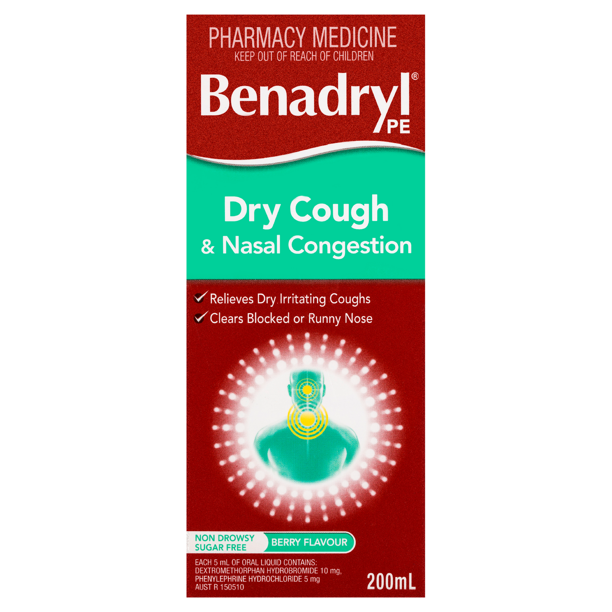 Benadryl PE Dry Cough & Nasal Congestion Liquid Berry Flavour 200mL