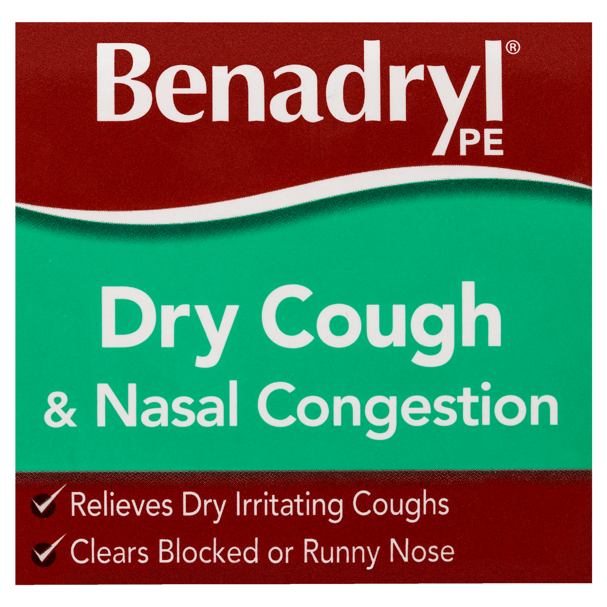 Berry flavoured Benadryl Dry Cough & Nasal Congestion Liquid gives you fast acting, effective relief from a persistent dry cough & congestion symptoms.