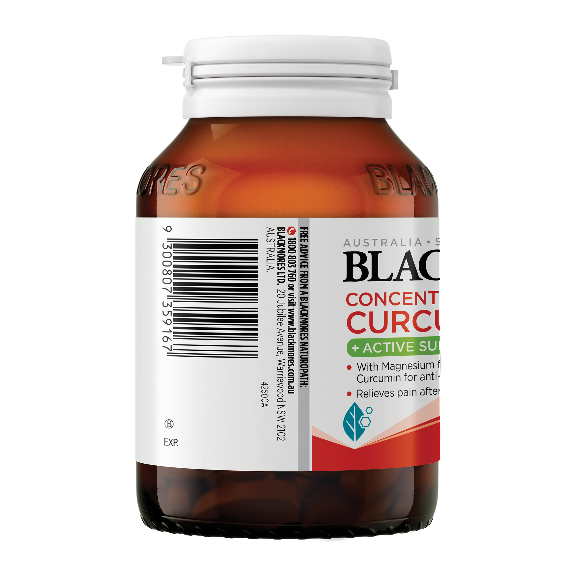 Blackmores Concentrated Curcumin + Active Support contains TurmXTRAâ„¢, a bioavailable form of concentrated Curcumin specifically formulated for optimal absorption.