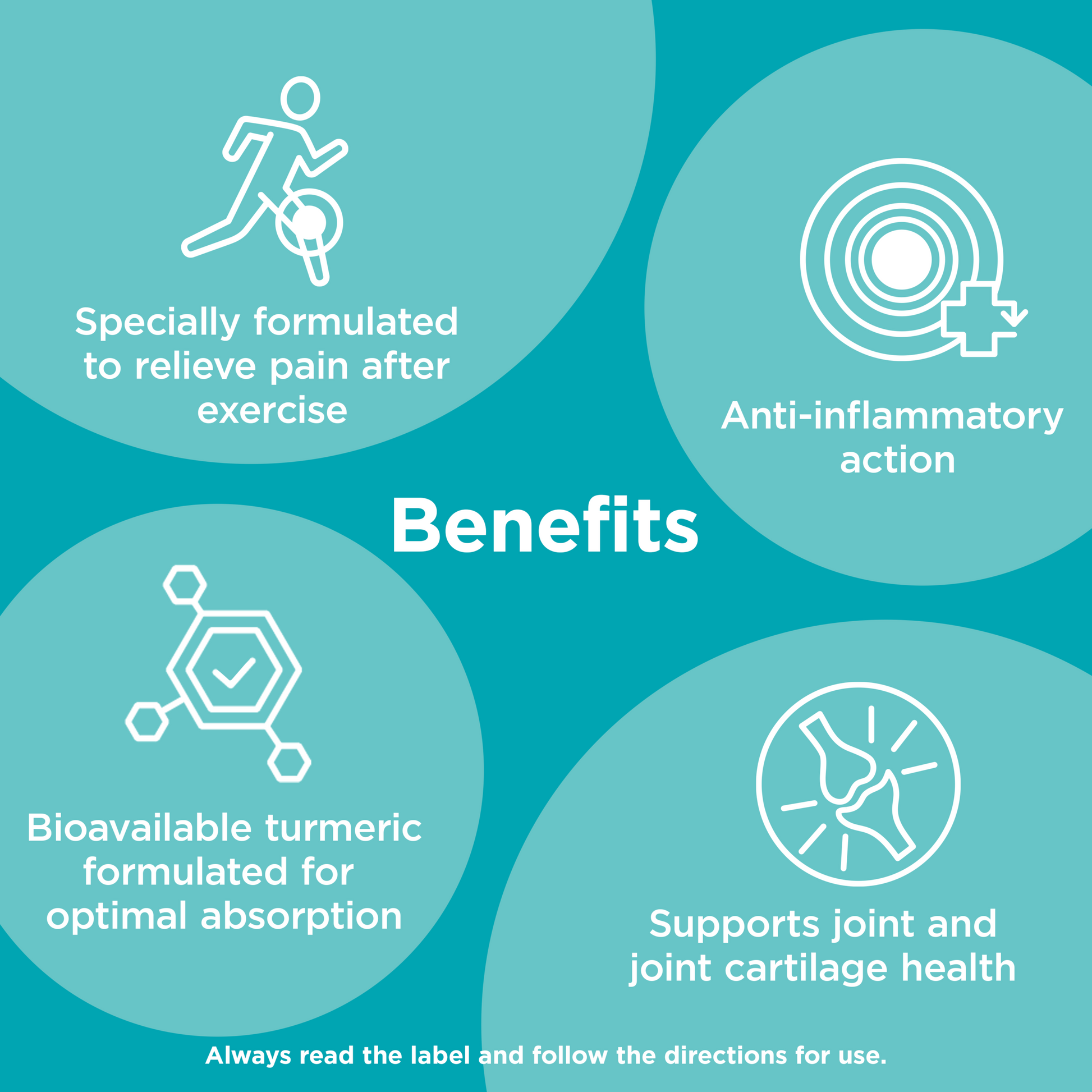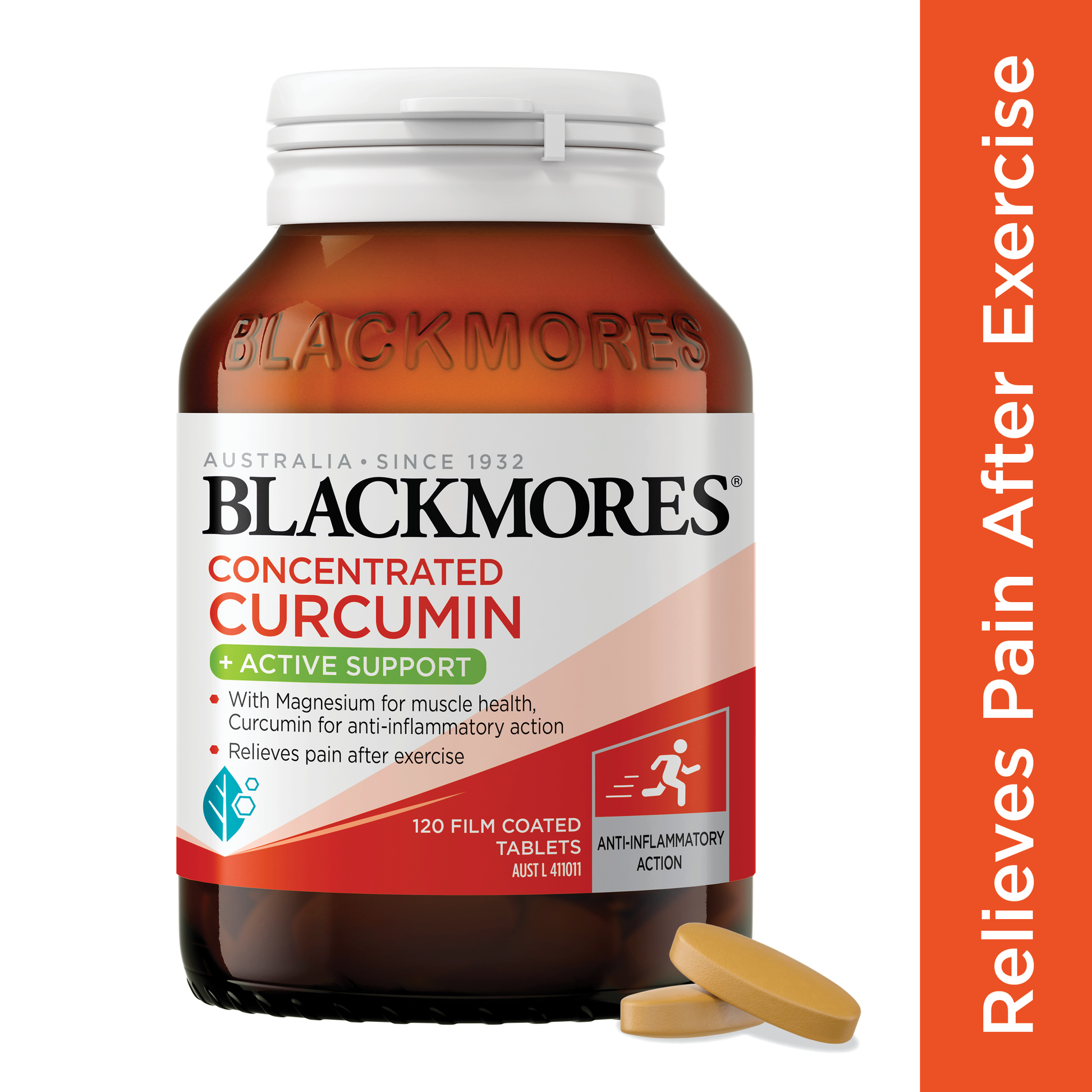 Blackmores Concentrated Curcumin + Active Support contains Magnesium for muscle health, Curcumin for anti-inflammatory action, Vitamin D to maintain bone health and Vitamin C to support immune system health.