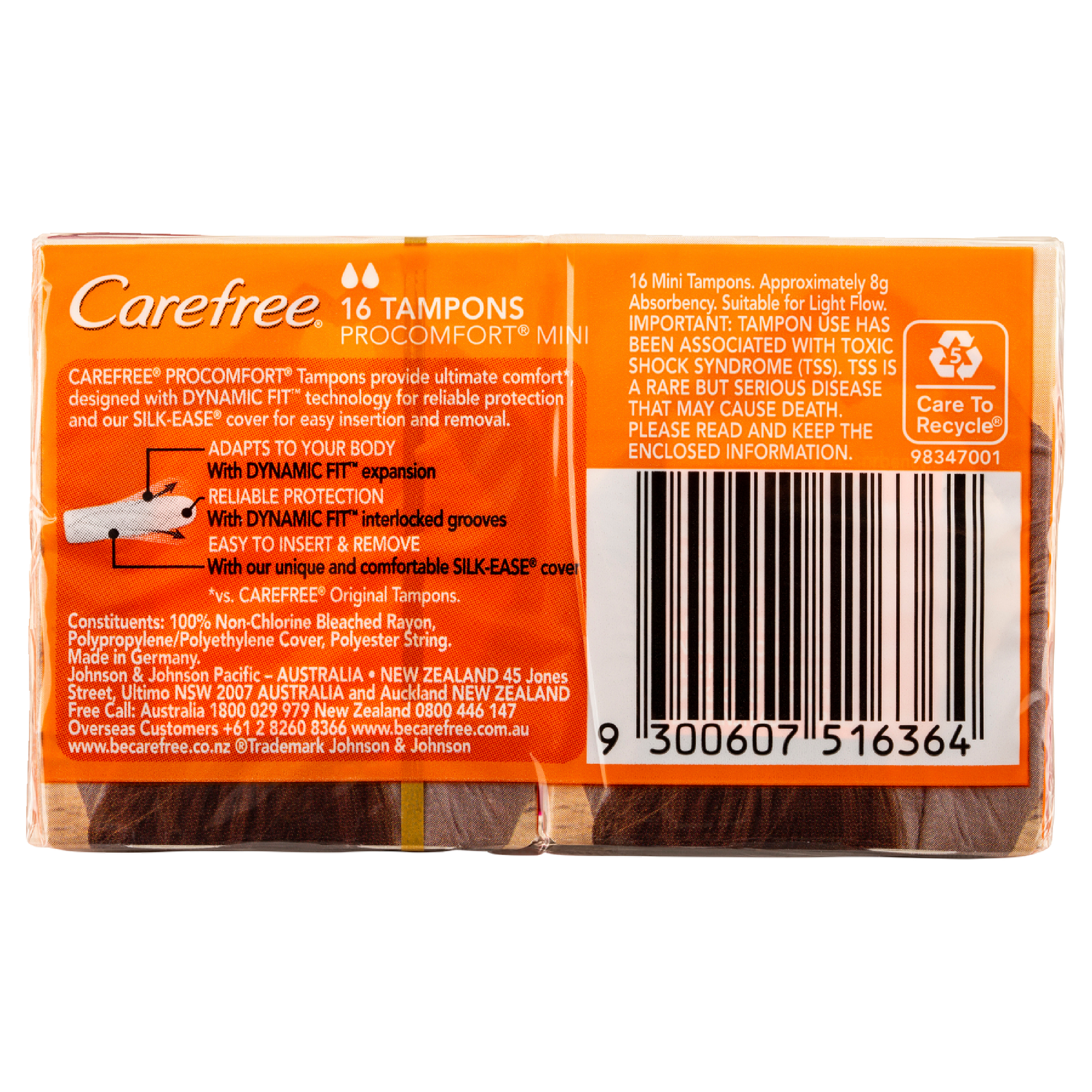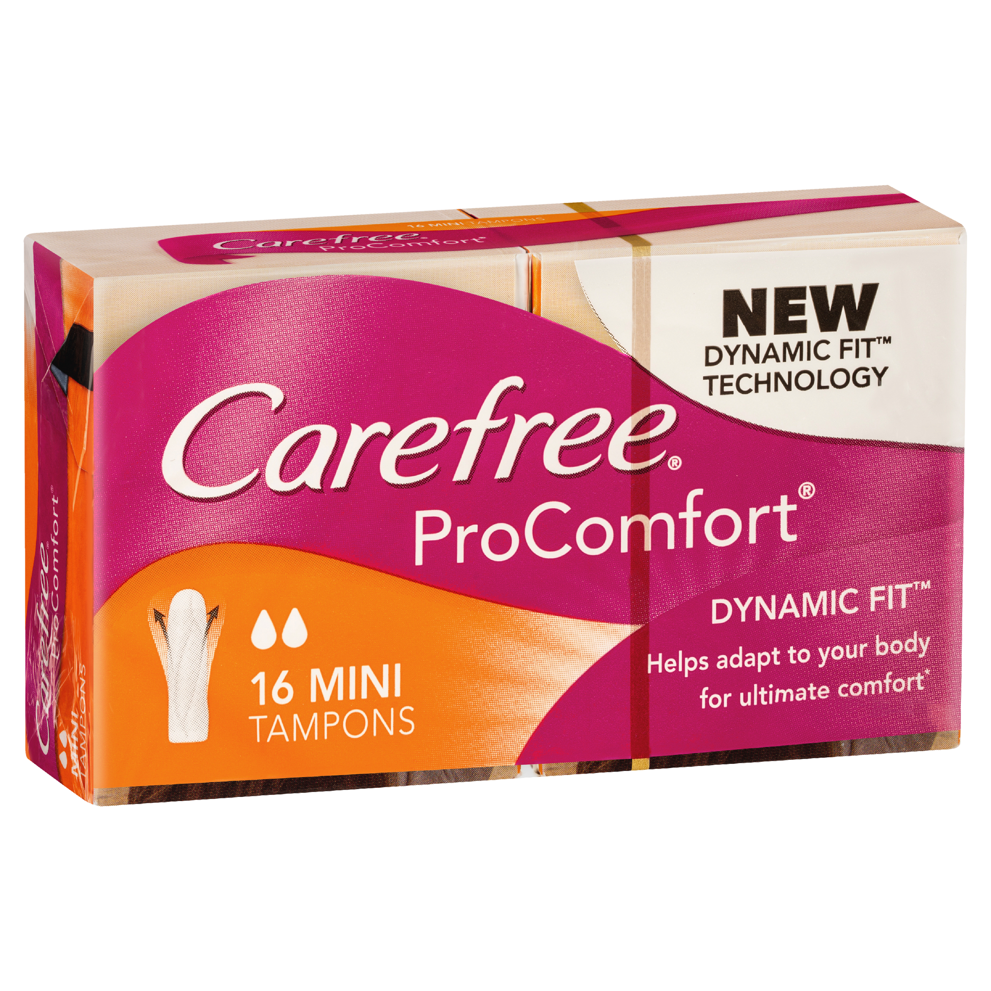Carefree ProComfort Tampons provide ultimate comfort (vs. Carefree Original Tampons), designed with Dynamic Fit technology for reliable protection and our Silk-Ease cover for easy insertion and removal.