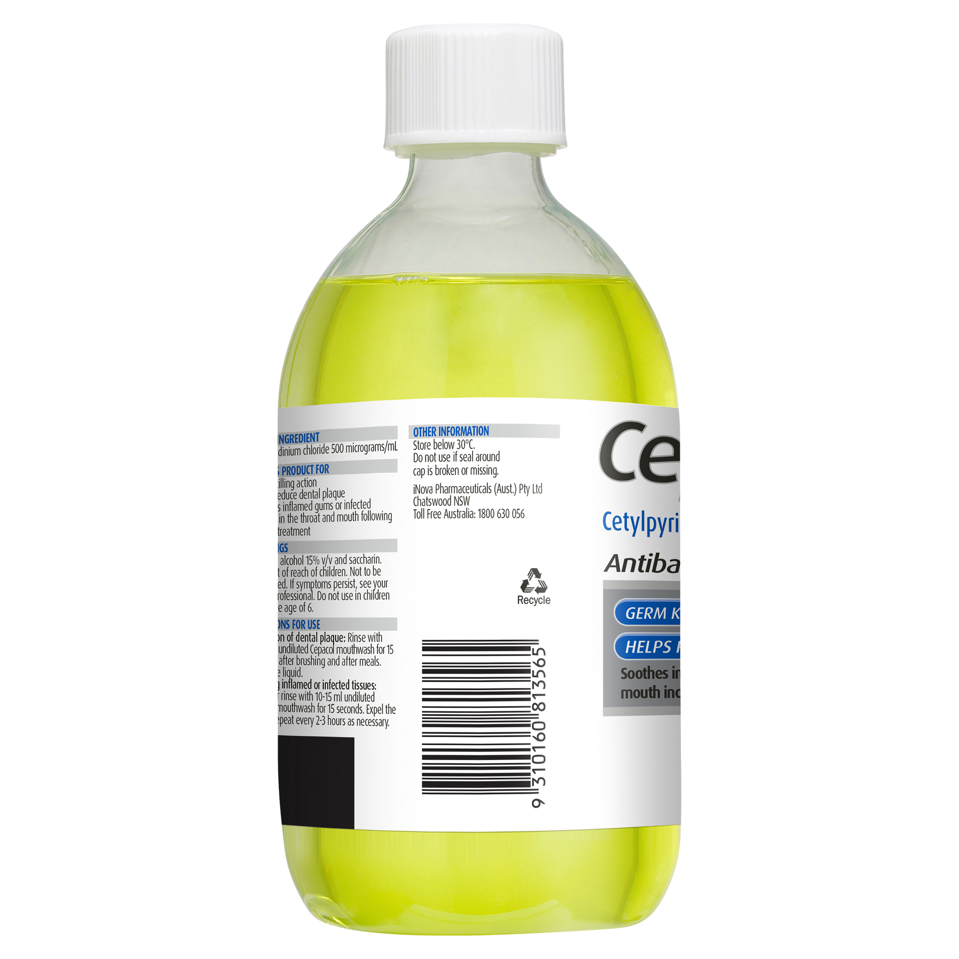 Cepacol original, is an antibacterial mouthwash. It helps soothe infected/swollen tissue in the mouth & throat. It also assists in removing dental plaque & killing germs.