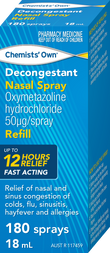 Chemist's Own Decongestant Nasal Spray Refill 180 Sprays