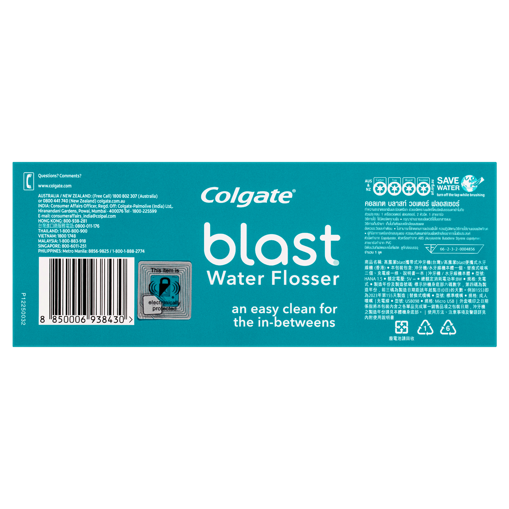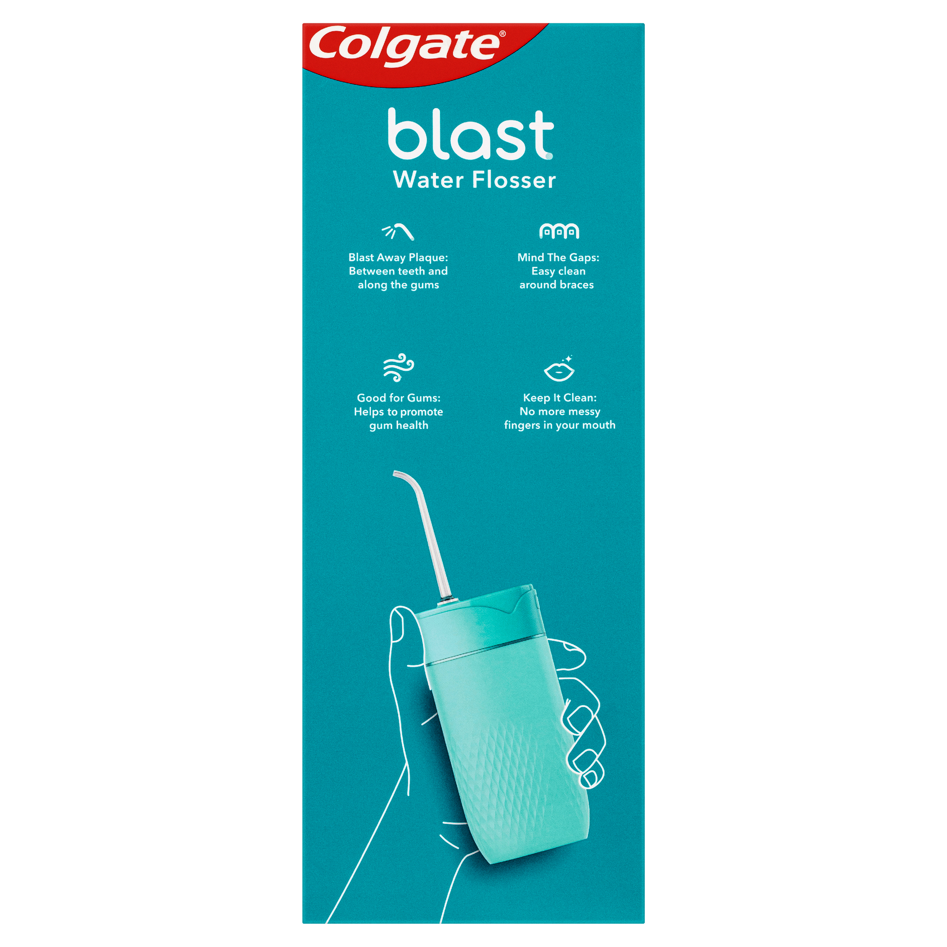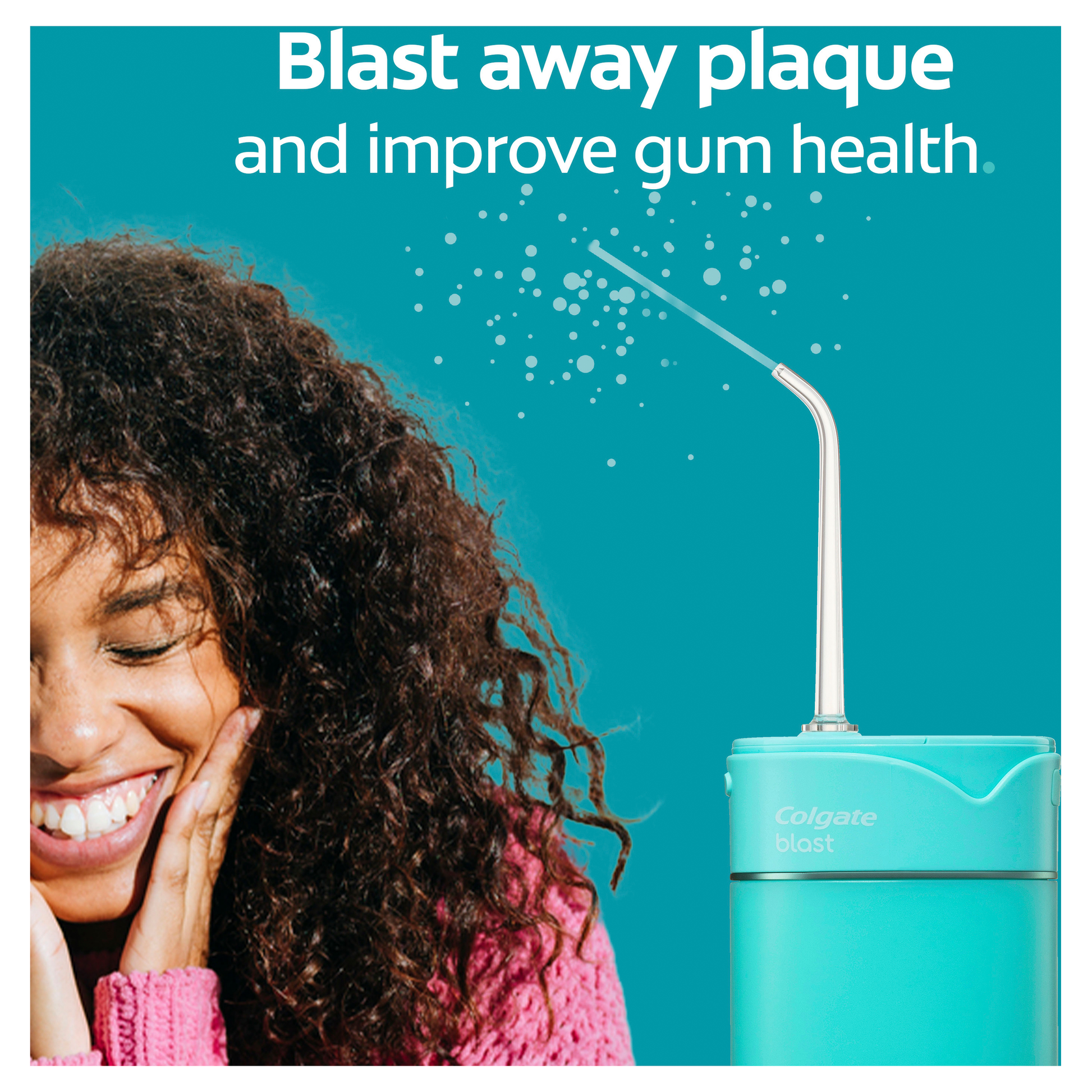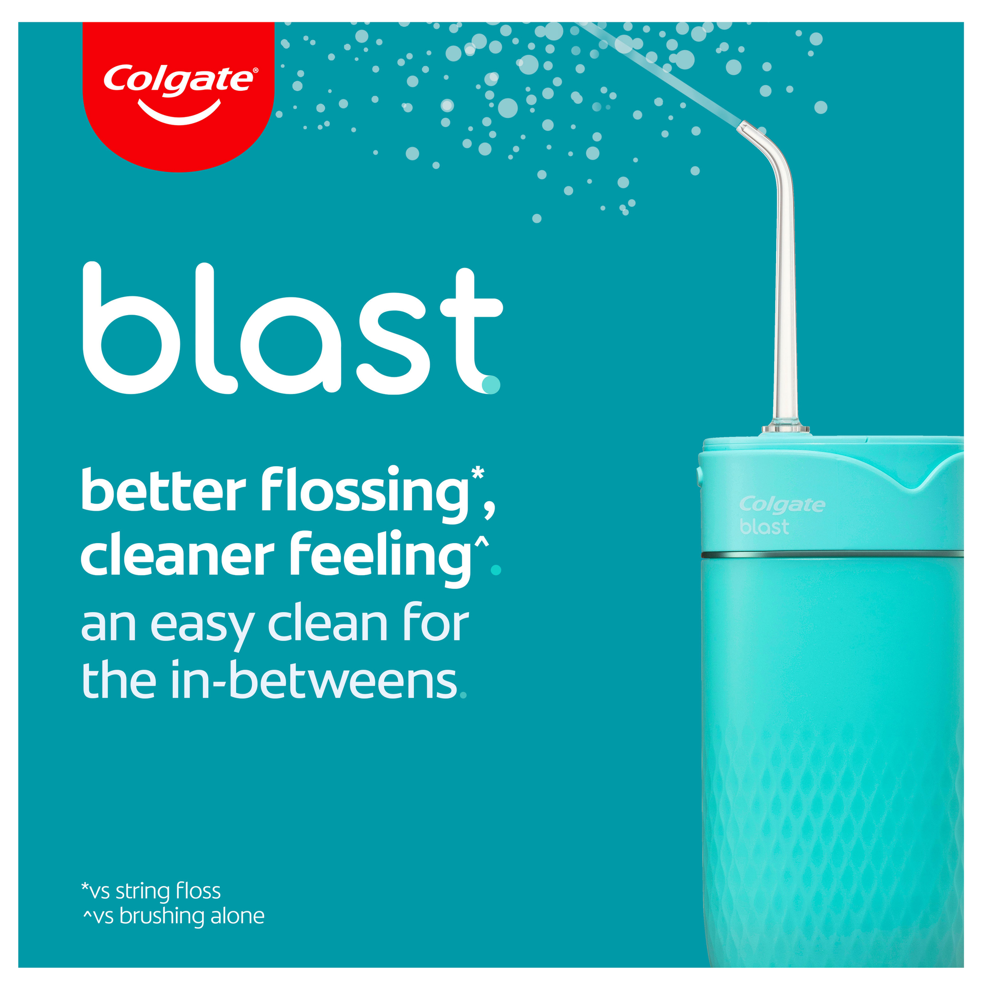 Colgate Blast Cordless Water Flosser provides better flossing* for a cleaner feeling**. No more messy fingers in your mouth with our compact, cordless and portable design. Blast away plaque in a way that is gentle on your gums.