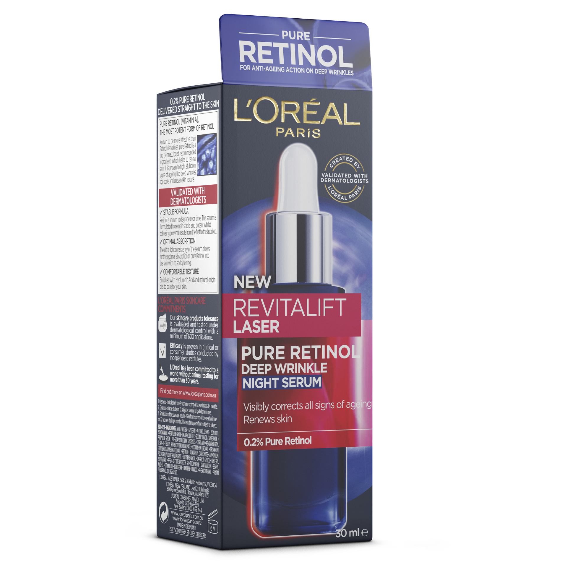 L’Oreal Revitalift Laser Pure Retinol Night Serum, is fast-acting & helps correct the appearance of deep wrinkles and signs of ageing like age spots & uneven skin.