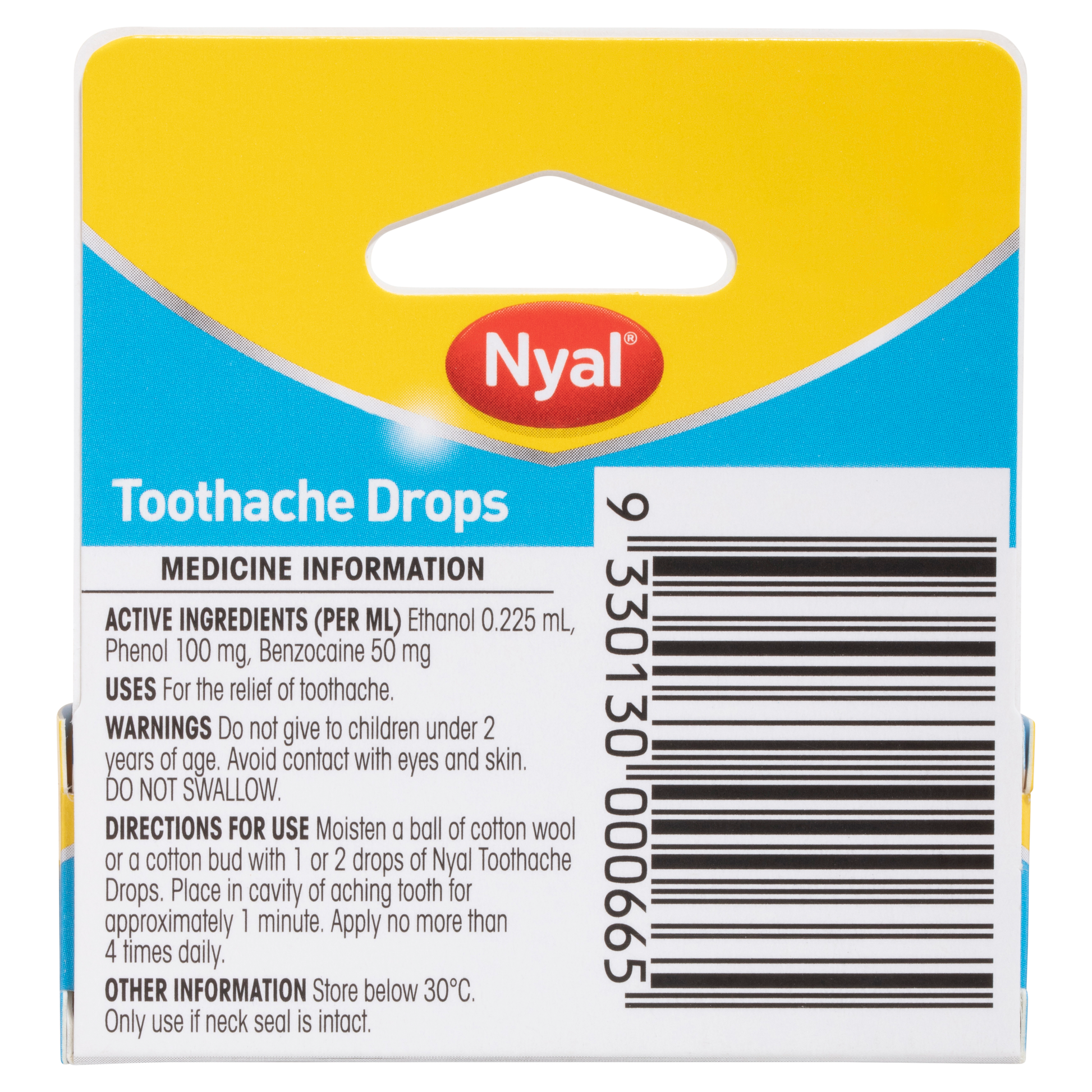 Nyal Toothache Drops is for relief of toothache. These drops may provide temporary relief of toothache and tooth pain.
