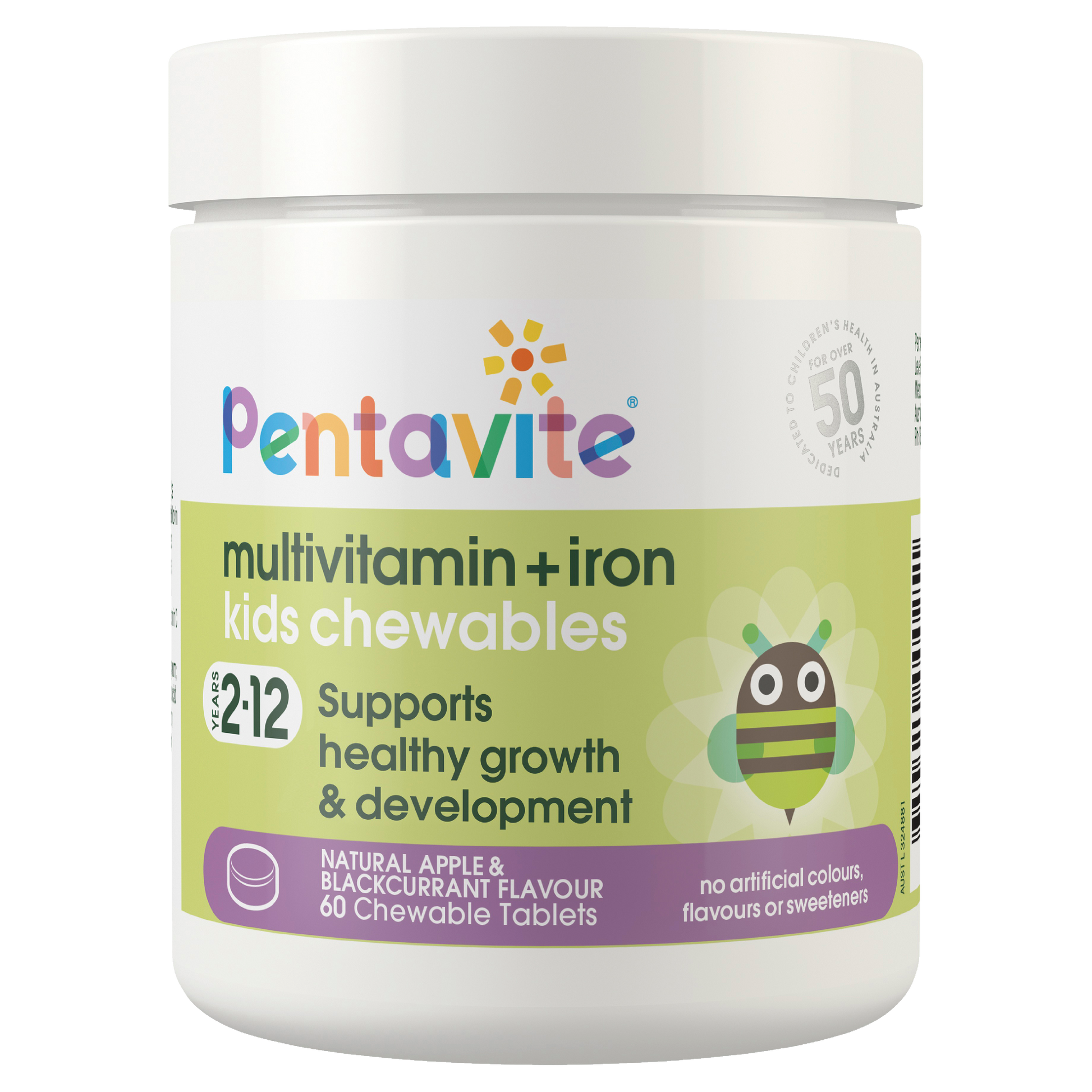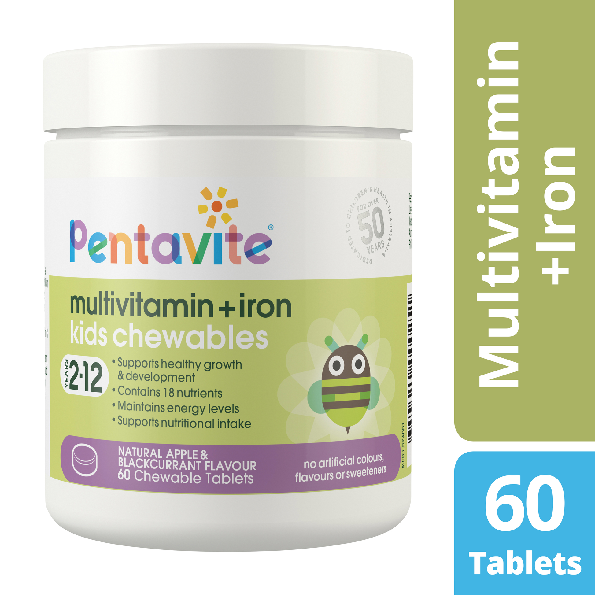 Pentavite Multivitamin + Iron Kids Chewables is a premium formulation to support healthy growth and development in children.