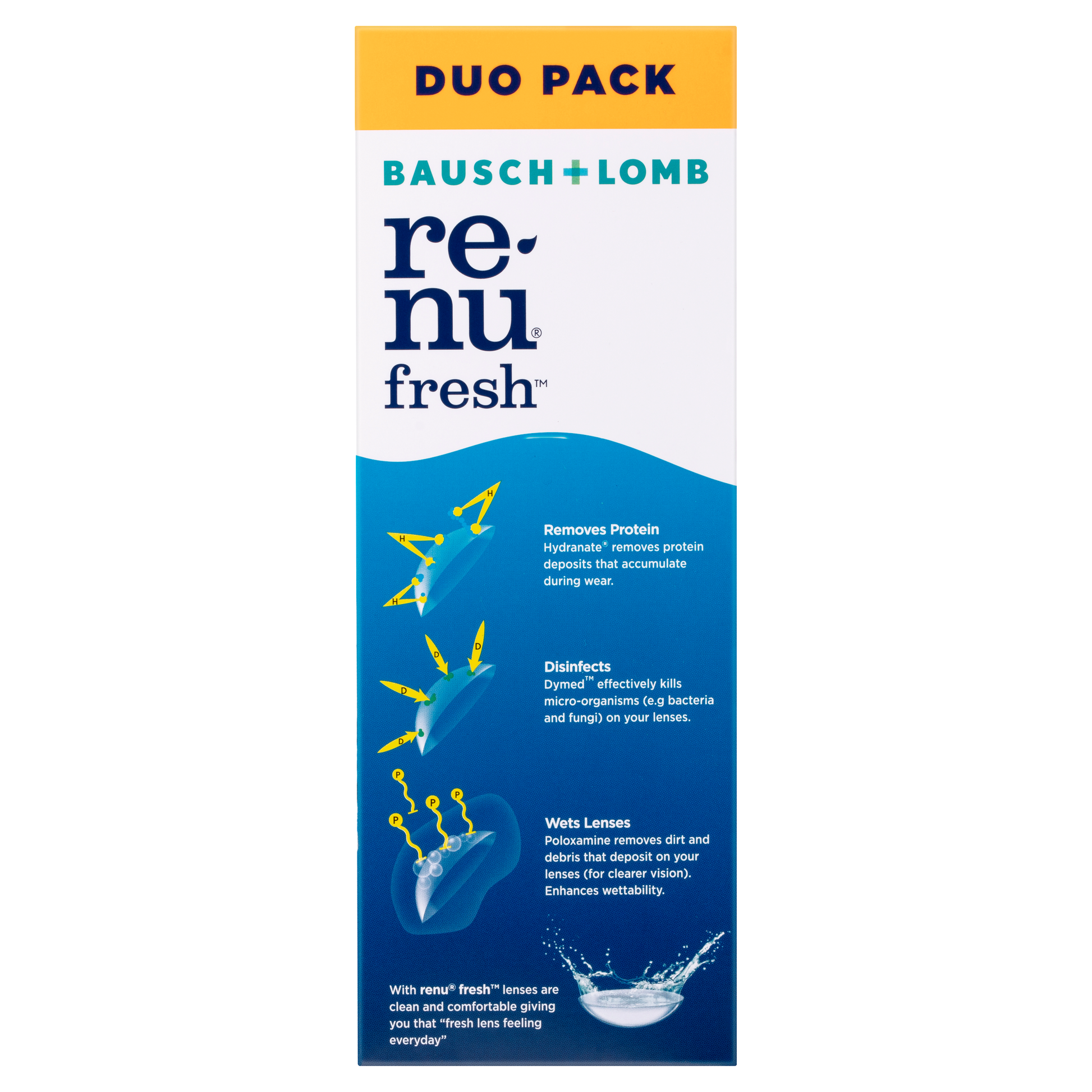 Renu Fresh fights germs, clean lenses and removes irritating protein deposits from your soft contact lenses everyday.