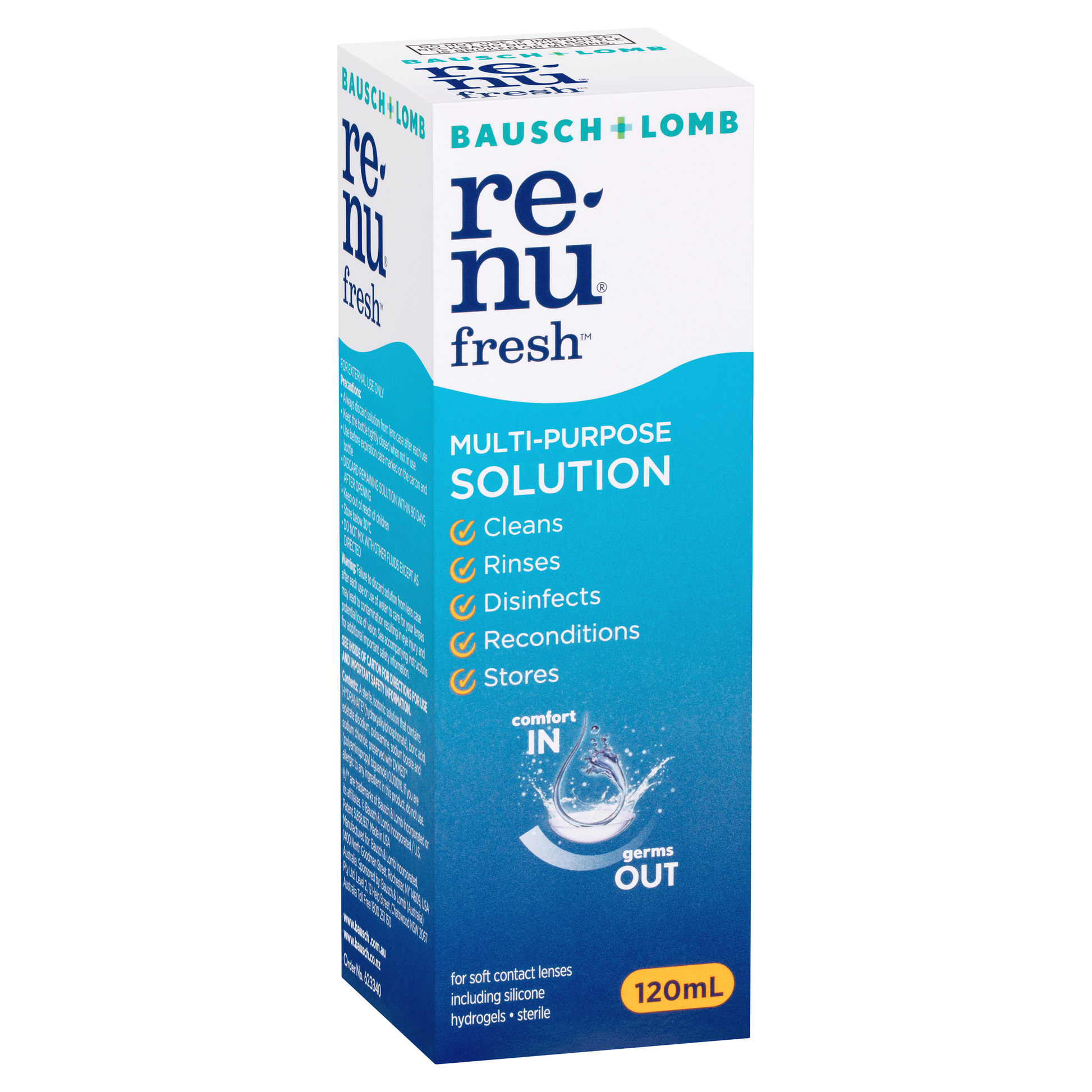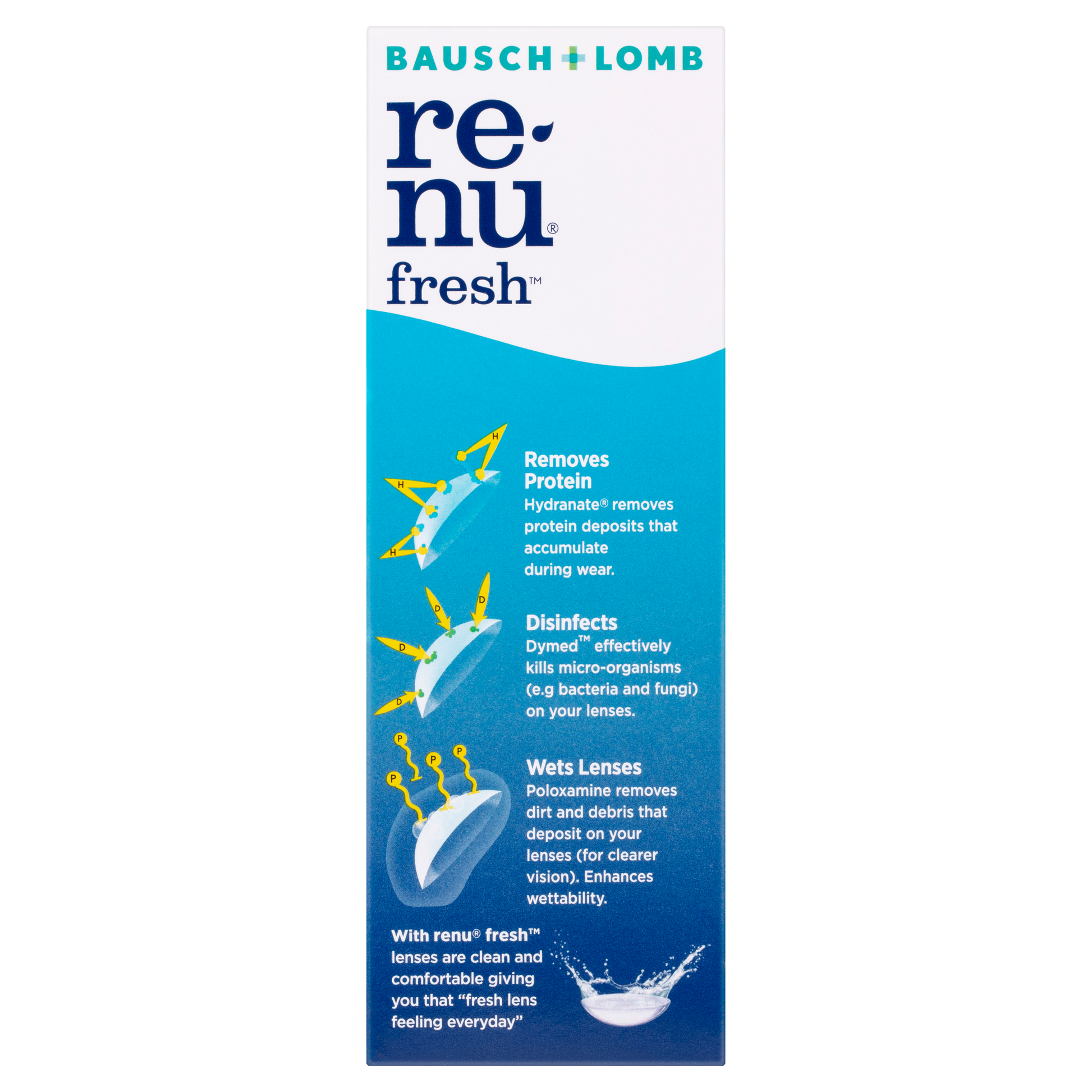Renu Fresh fights germs, clean lenses and removes irritating protein deposits from your soft contact lenses everyday.